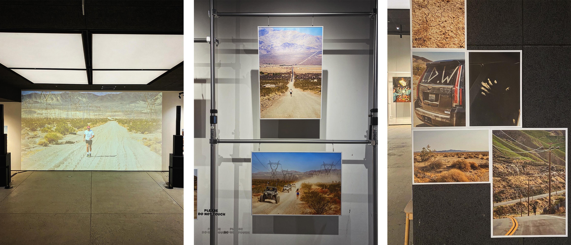 전시장 한쪽 벽에는 TSP의 풍경들이 슬라이드 영상으로 투사되며 관람자의 리듬을 사막의 시간에 맞춰 두었습니다.