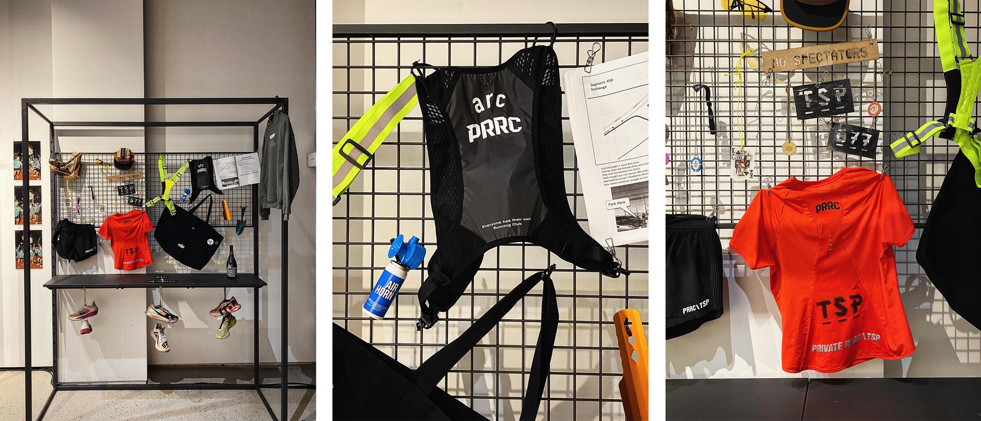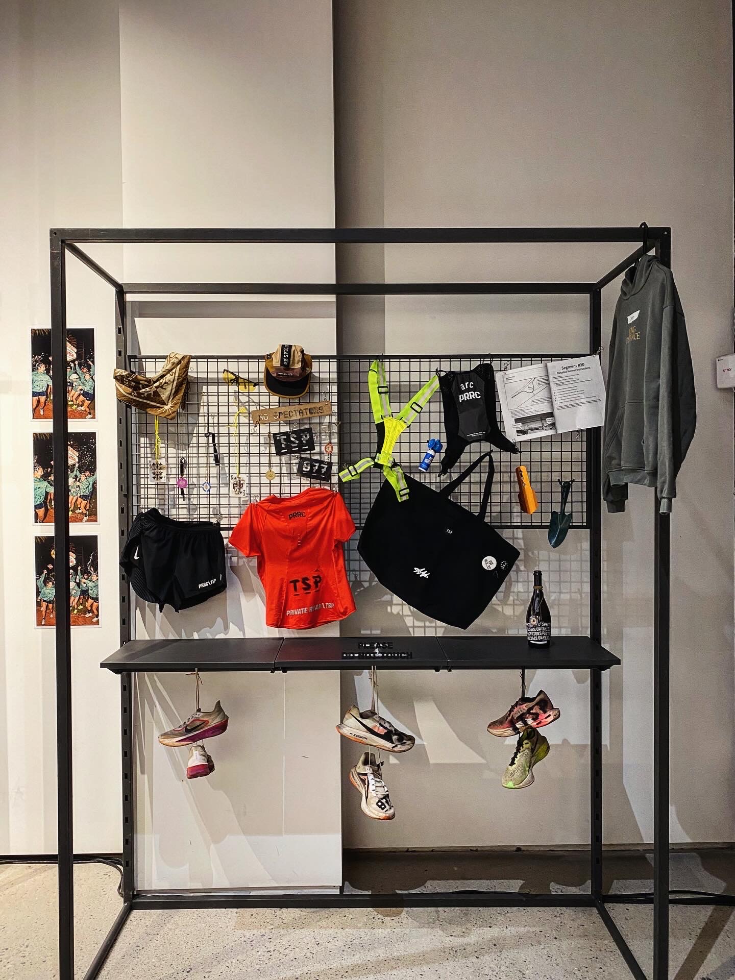 작가가 실제로 착용했던 러닝 기어, 의류 등의 오브제 전시는 사진과 함께 '현장의 숨결'을 전하는 증거로 기능했습니다.