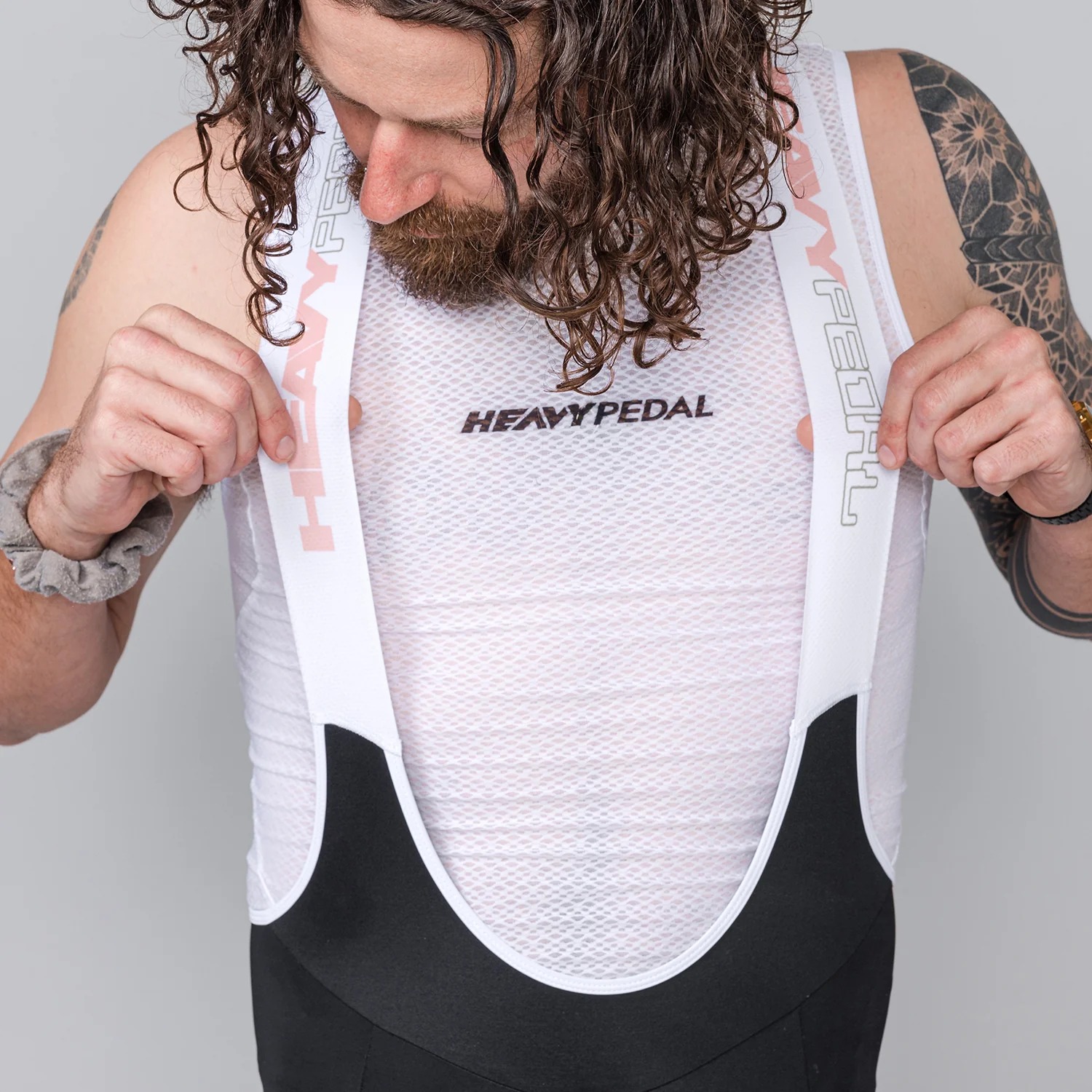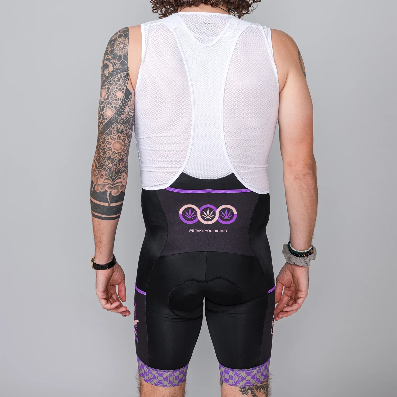 독특한 기하학 패턴과 타이포그래피가 특징인 HIGHER CARGO BLOX BIB입니다.