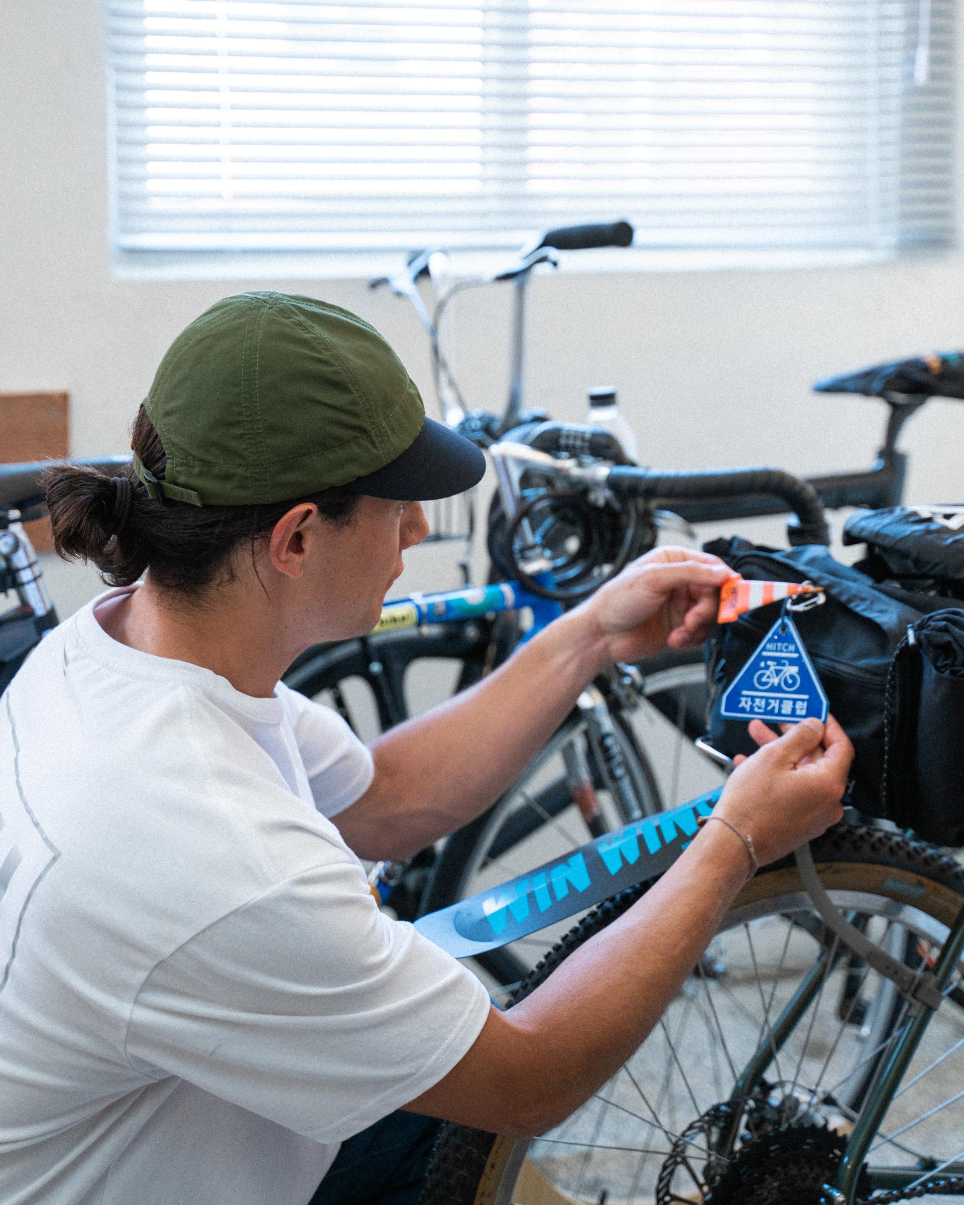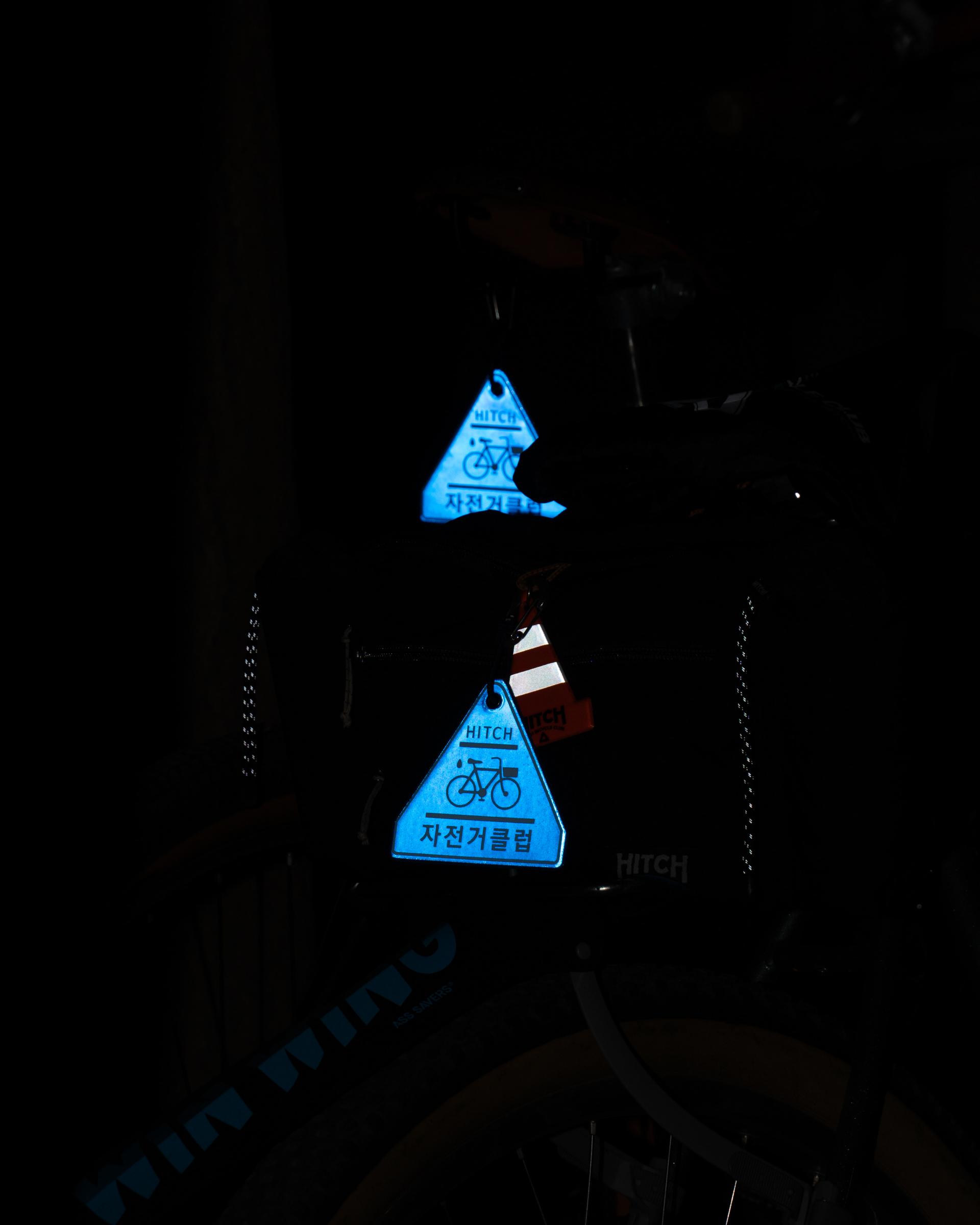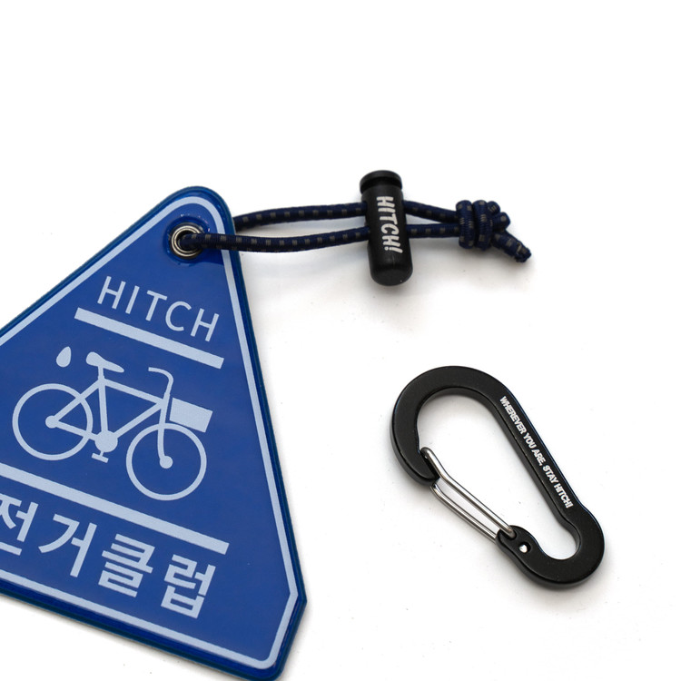 PRODUCT INFOREFLECTOR HITCH SIGN입니다.자전거, 가방 등 장착 시 활용 가능한 탄성 스트링과 카라비너 1개가 포함됩니다.원하는 방법으로 사용하기 쉽게 매듭으로 마감되어 있습니다.※ 무리한 힘을 주면 제품이 손상될 수 있으니 주의해 주세요.