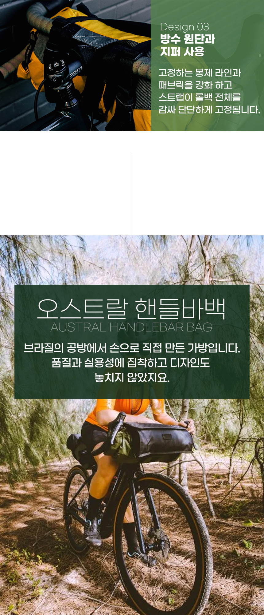 AUSTRAL HANDLEBAR BAG은 GRAVEL, ROAD 및 MTB 자전거에 장착 가능합니다.