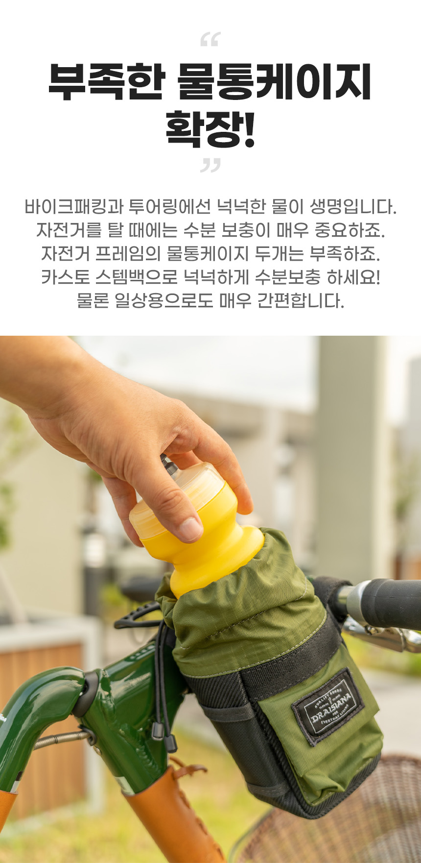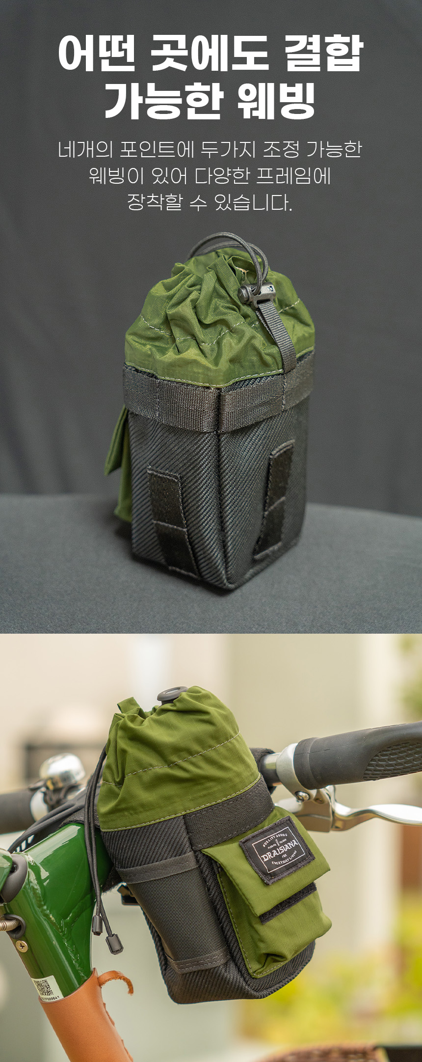 3개의 벨크로를 이용하여 핸들바에 장착하기 쉽습니다.
