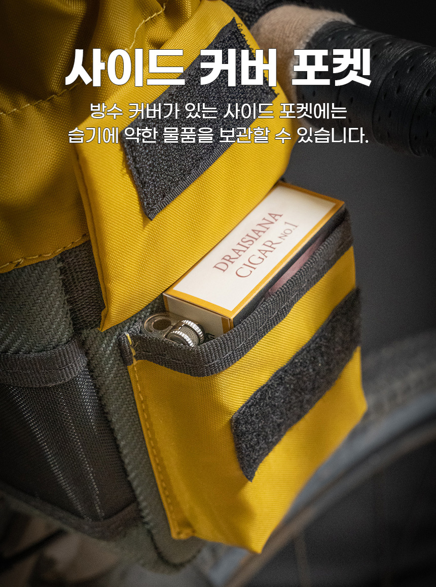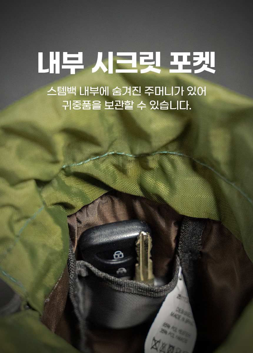 다양한 수납포켓 (메쉬 사이드 포켓, 사이드 커버 포켓, 내부 시크릿 포켓)