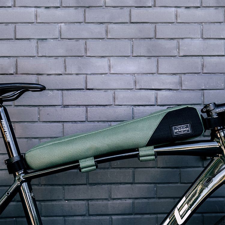 이 TOP TUBE BAG은 후크 앤 루프 패스너, 내부 칸막이 및 외부 포켓이 특징입니다.
