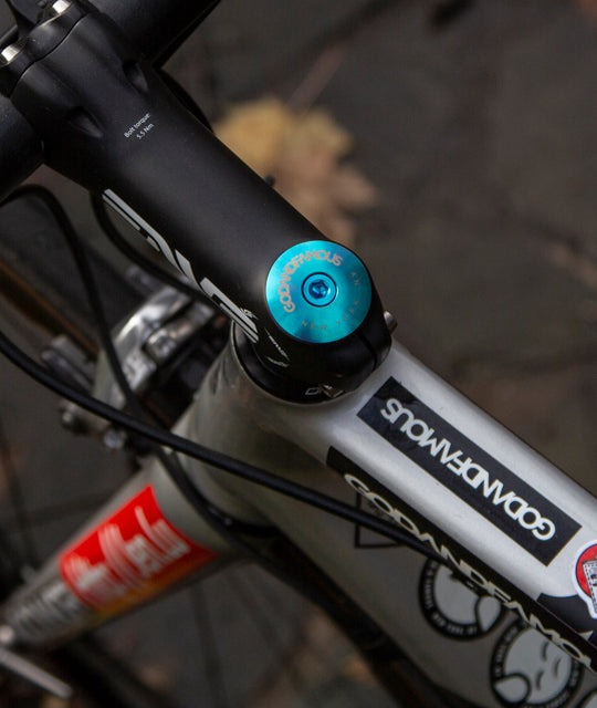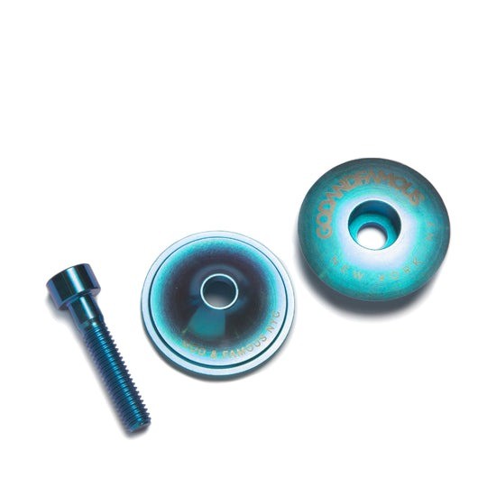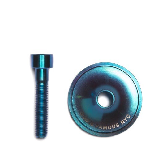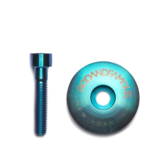 BRANDGOD AND FAMOUS | 갓 앤 페이머스PRODUCT INFO1-1/8" 티타늄 헤드셋 상단 스템 캡입니다.로우 프로파일이며, 양쪽에 양극 산화 및 레이저 에칭으로 처리되었습니다.티타늄 스템 볼트 포함입니다.SIZE INFO1-1/8" WEIGHT : 10g (CAP/BOLT)