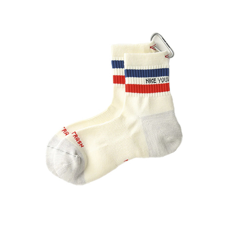 FUNCTION HIKER TRASH를 기반으로 하는 하이킹 & 트레킹 모델입니다. 발바닥은 파일직물을 사용하여 쿠션성이 우수합니다. HIKER TRASH의 양말의 입구에는 카라비나를 통과시키기 위한 홀이 설치되어 있습니다. 이것은 장거리 등산객들이 젖은 양말을 말리기 위해 칼로 구멍을 뚫고 텐트와 배낭에 매단 모습에서 착안을 하였습니다. 마른 양말은 언제든지 등산객들을 행복하게 만듭니다! |