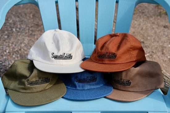 SEND IT SAFELY 자수 로고가 특징인 모자입니다.