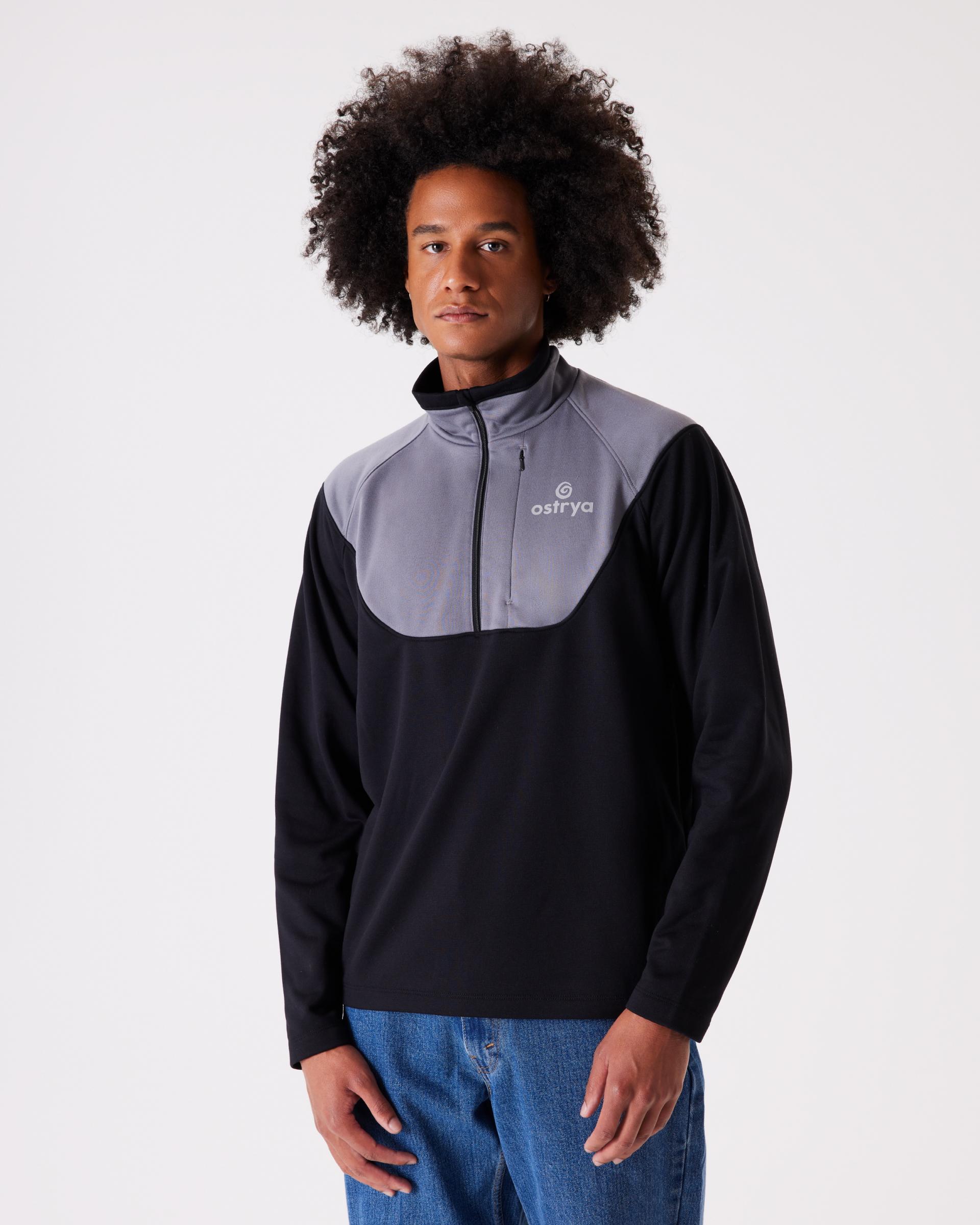 하프 집업 형태로 열 컨트롤이 자유로우며, 가슴의 집업 포켓으로 작은 소지품 수납이 가능합니다.