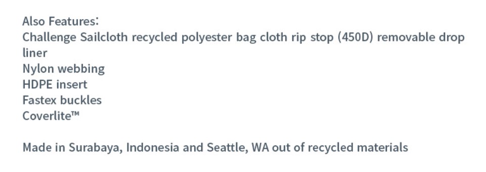 CHALLENGE ECOPAK 100% 재활용 폴리에스터로 제작되었으며, 해변에서 수거된 약 4개의 플라스틱 병이 들어 있습니다.