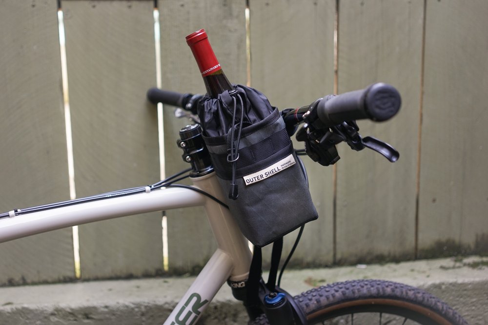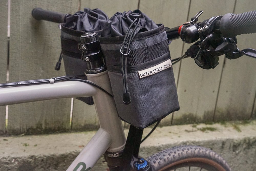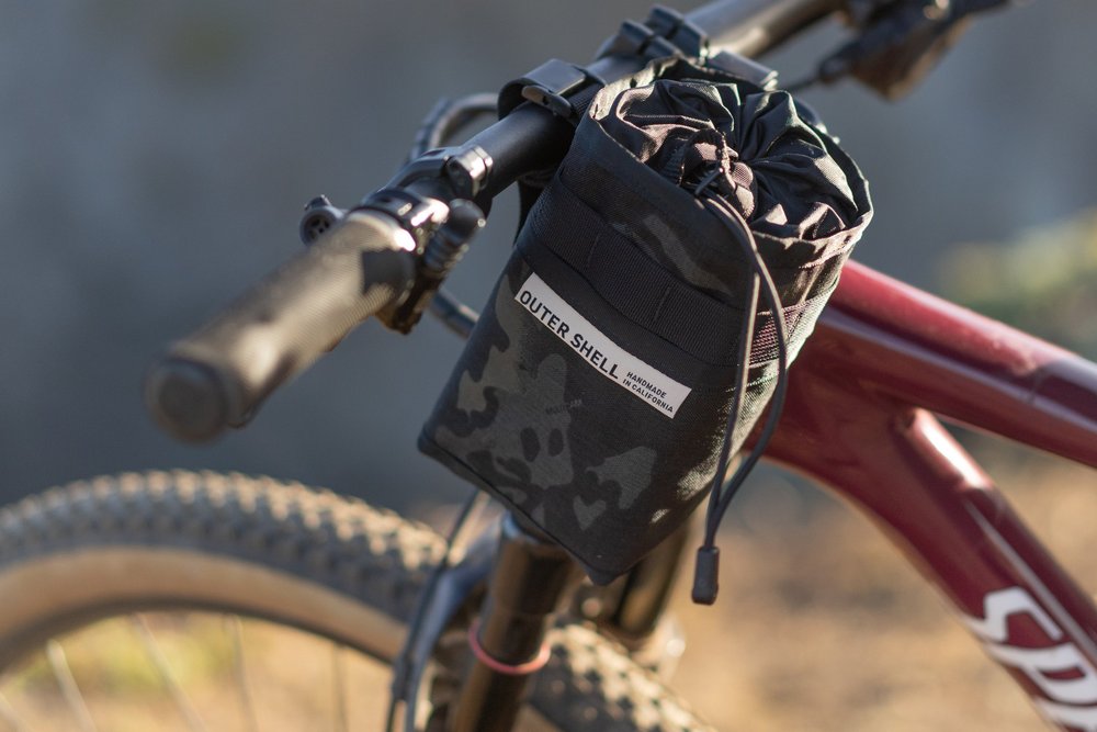 POSITION THE BAG 하단 부착물이 헤드 튜브에 가장 가깝고, 브랜드 로고 택이 바깥쪽(왼쪽 또는 오른쪽)을 향하도록 스템 캐디를 회전합니다. |