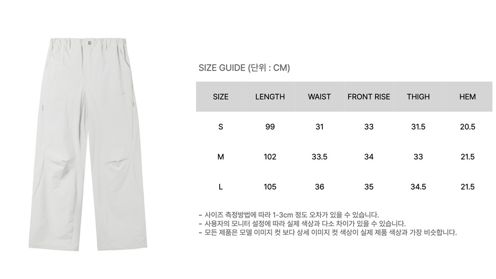 바지 밑단 안쪽에는 사이즈 조절 가능한 스트링이 적용되어 상황에 맞게 조절이 가능합니다.