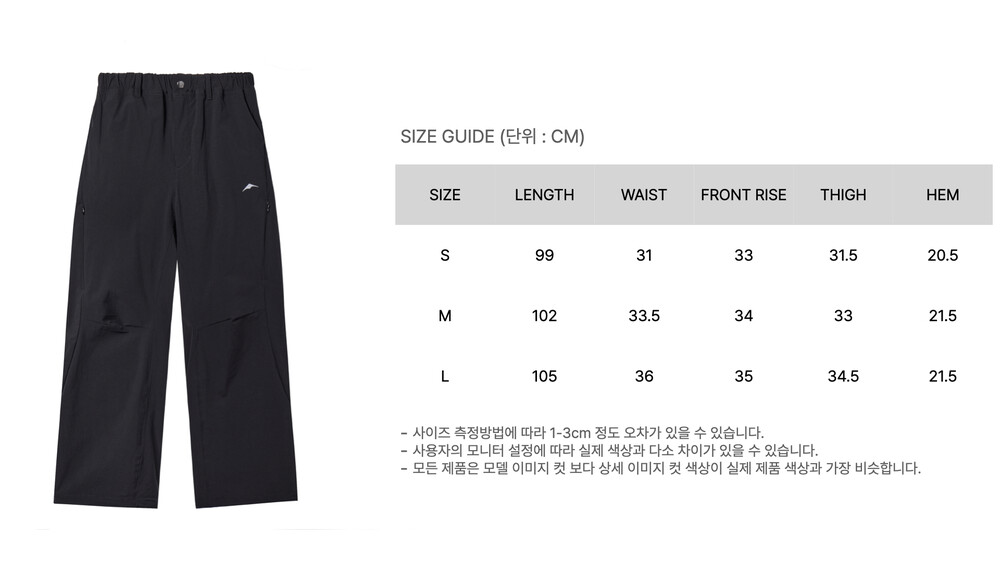바지 밑단 안쪽에는 사이즈 조절 가능한 스트링이 적용되어 상황에 맞게 조절이 가능합니다.