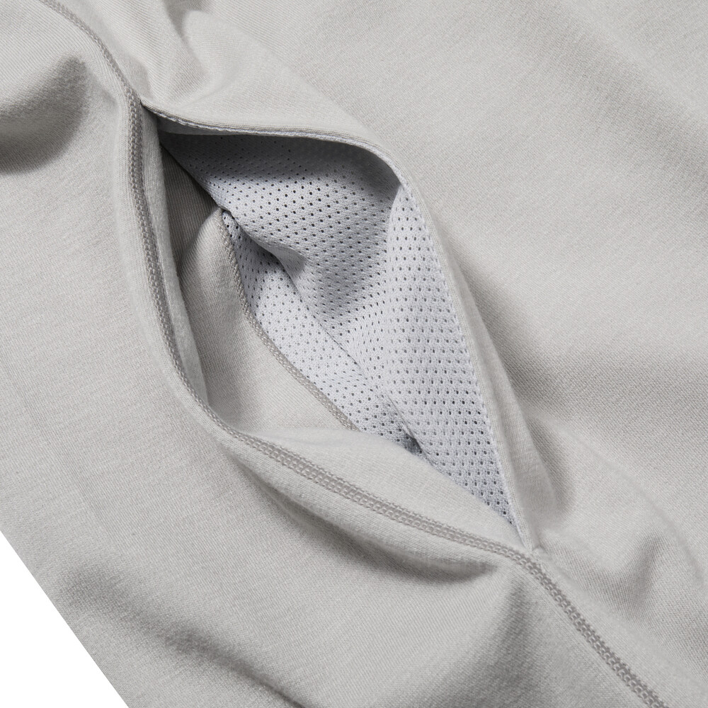 스트레치성과 소재 BACK 면의 AIRLY HOLE을 적용하여 통기성과 QUICK DRY (흡한속건) 기능이 있습니다.