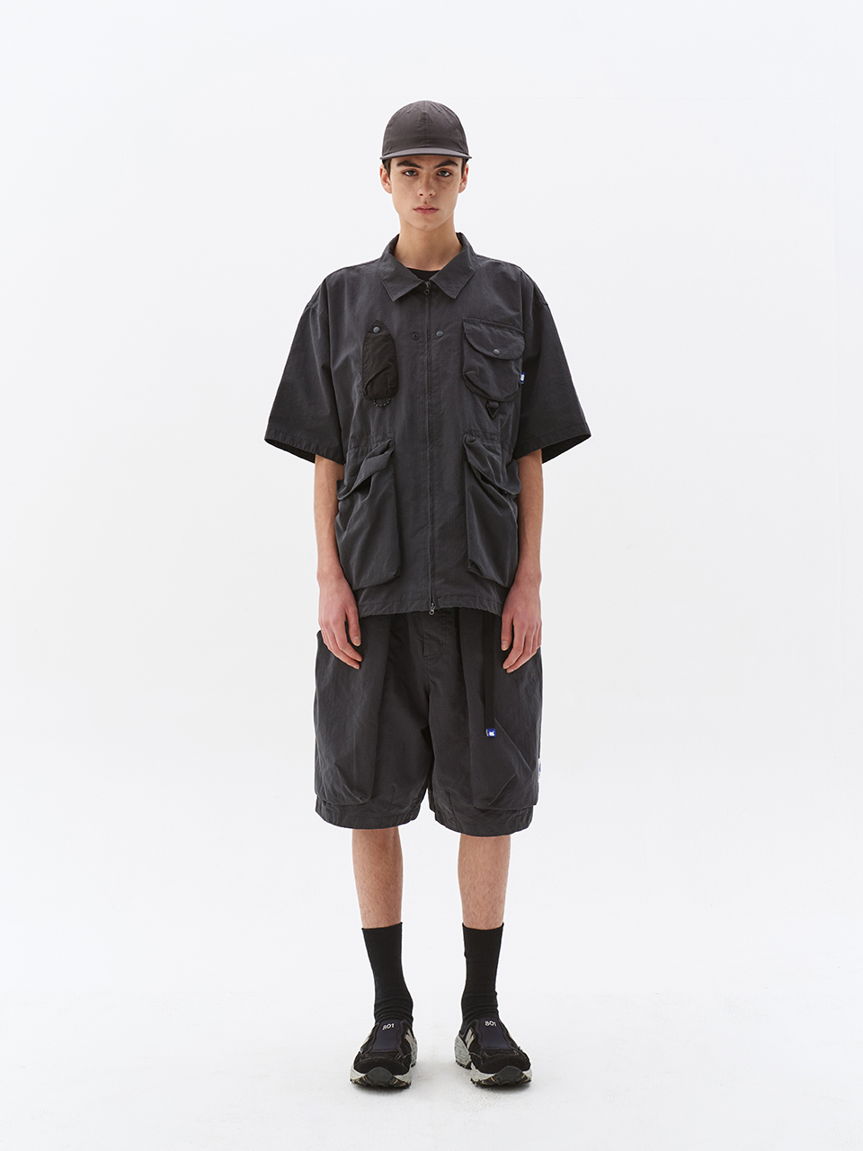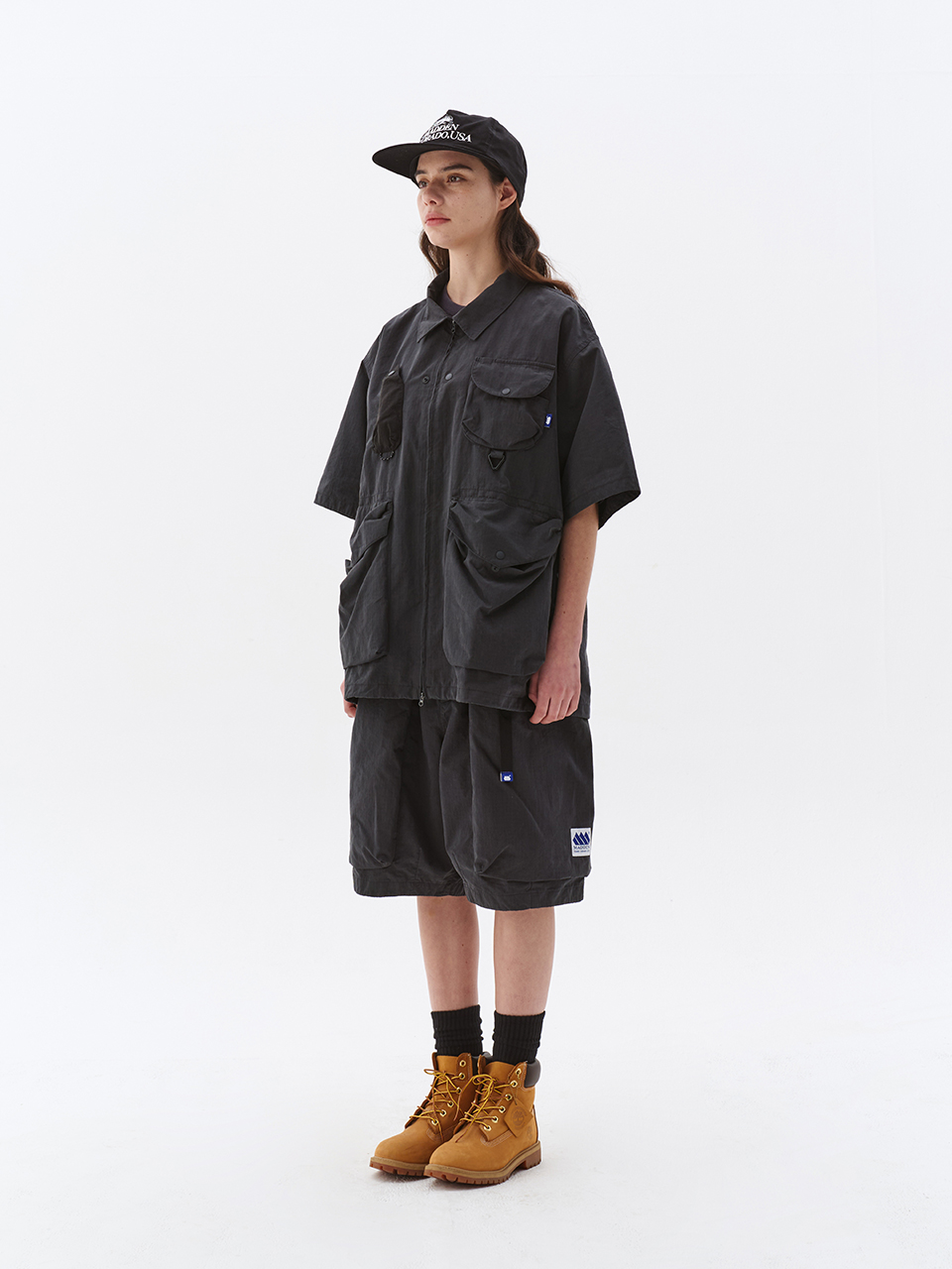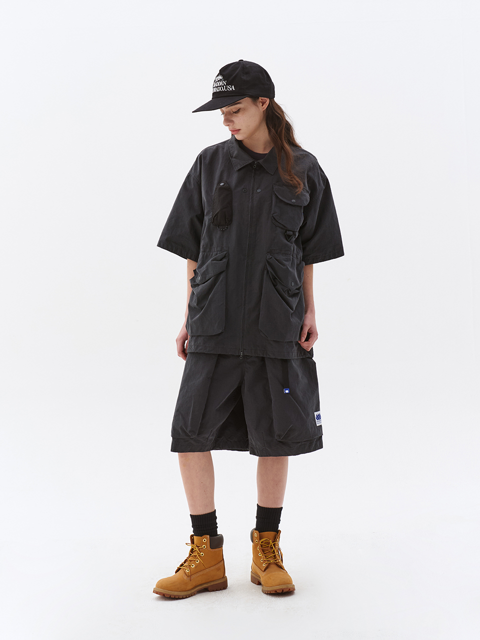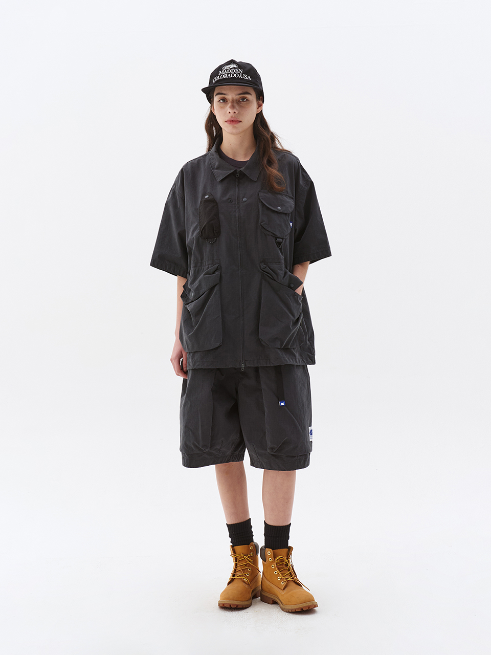 MULTI POCKET WASHED CAMPER SHORTS - CHARCOAL