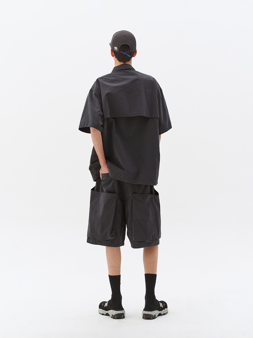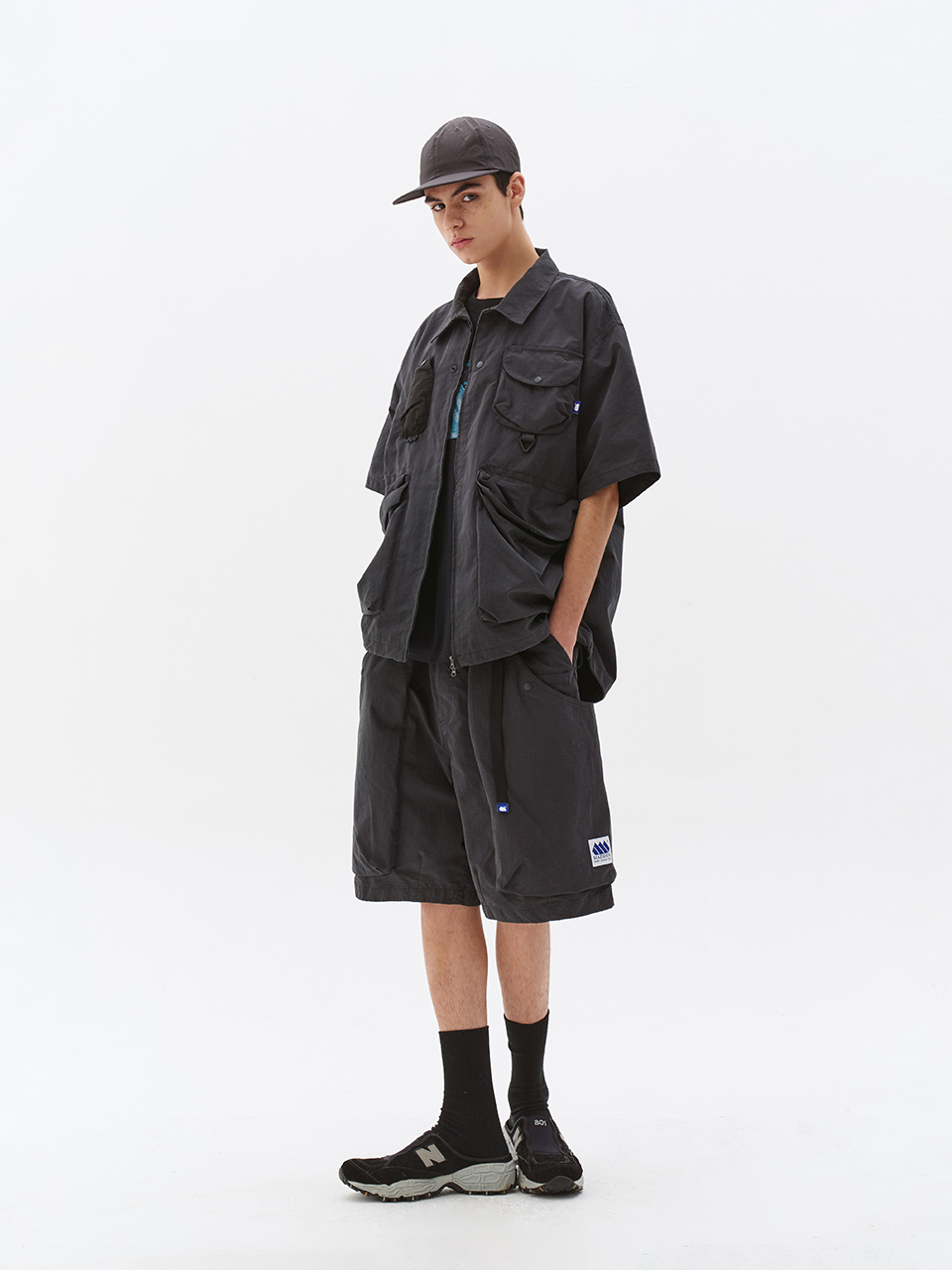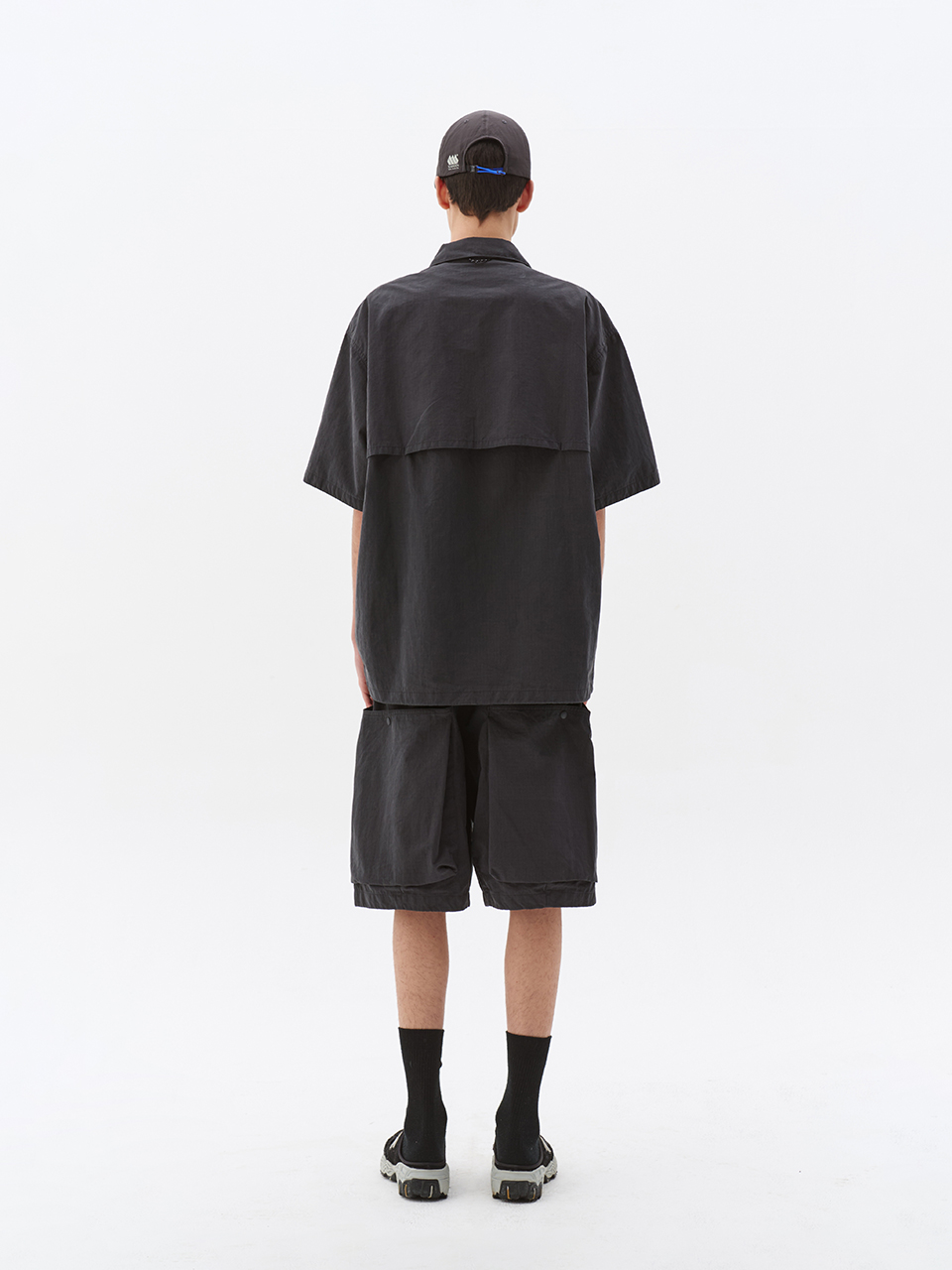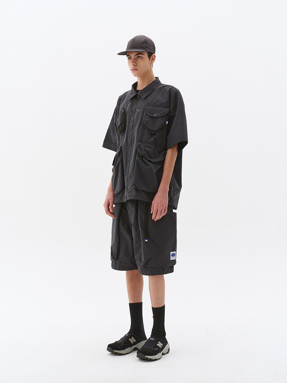 MULTI POCKET WASHED CAMPER SHORTS - CHARCOAL