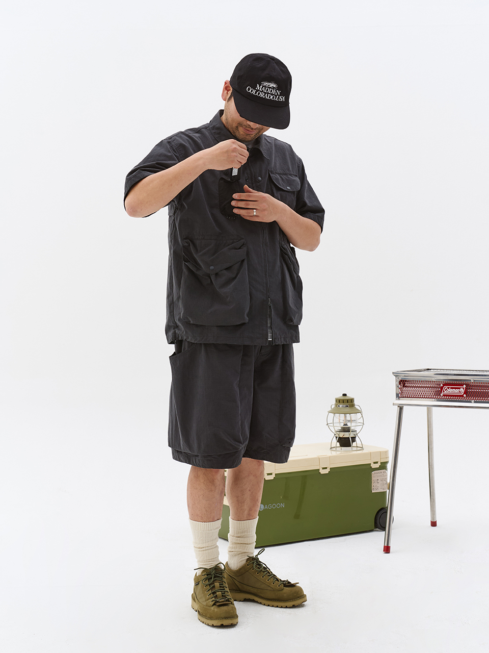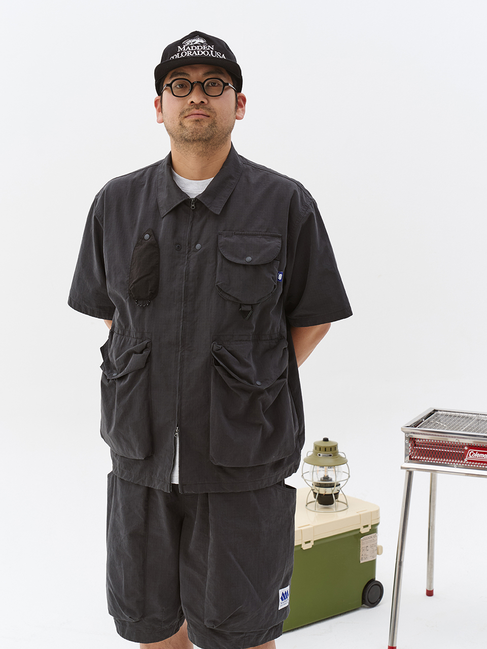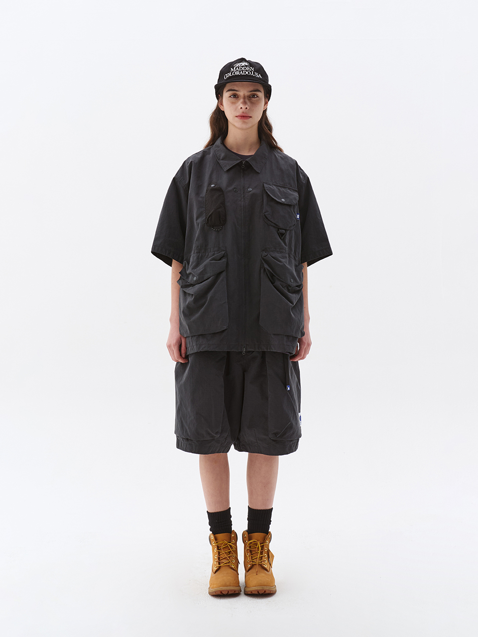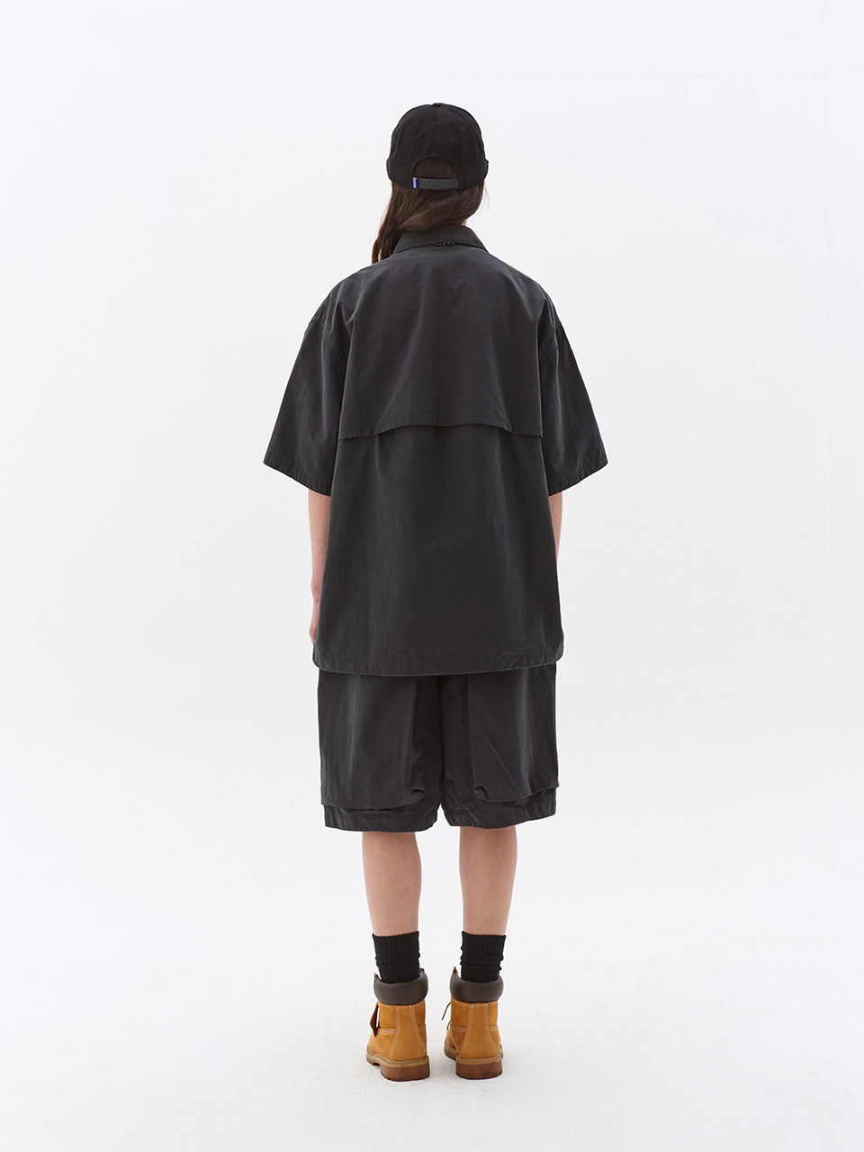 MULTI POCKET WASHED CAMPER SHORTS - CHARCOAL