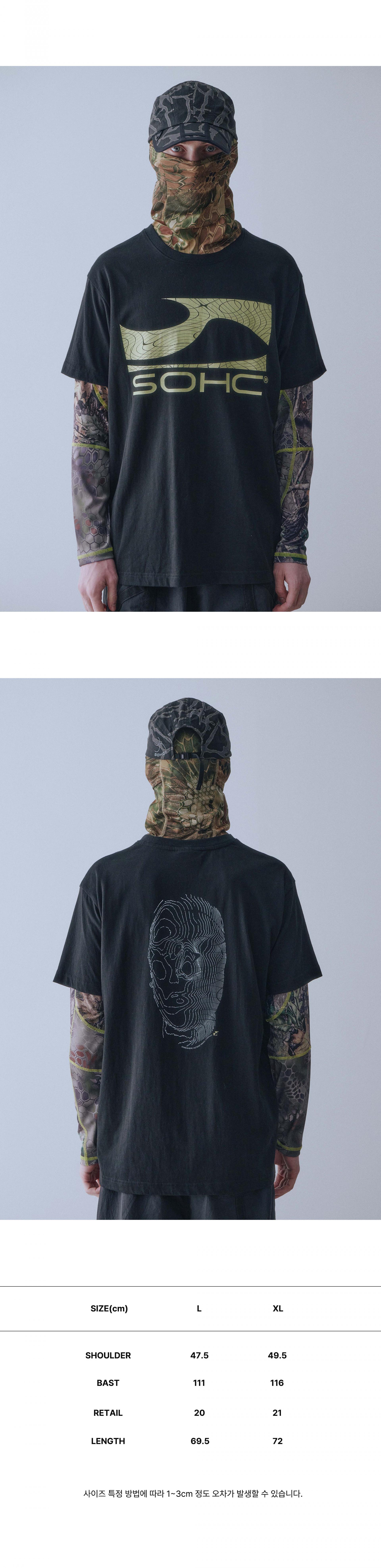 SOHC 로고가 사용된 코튼소재의 하프 티셔츠입니다.