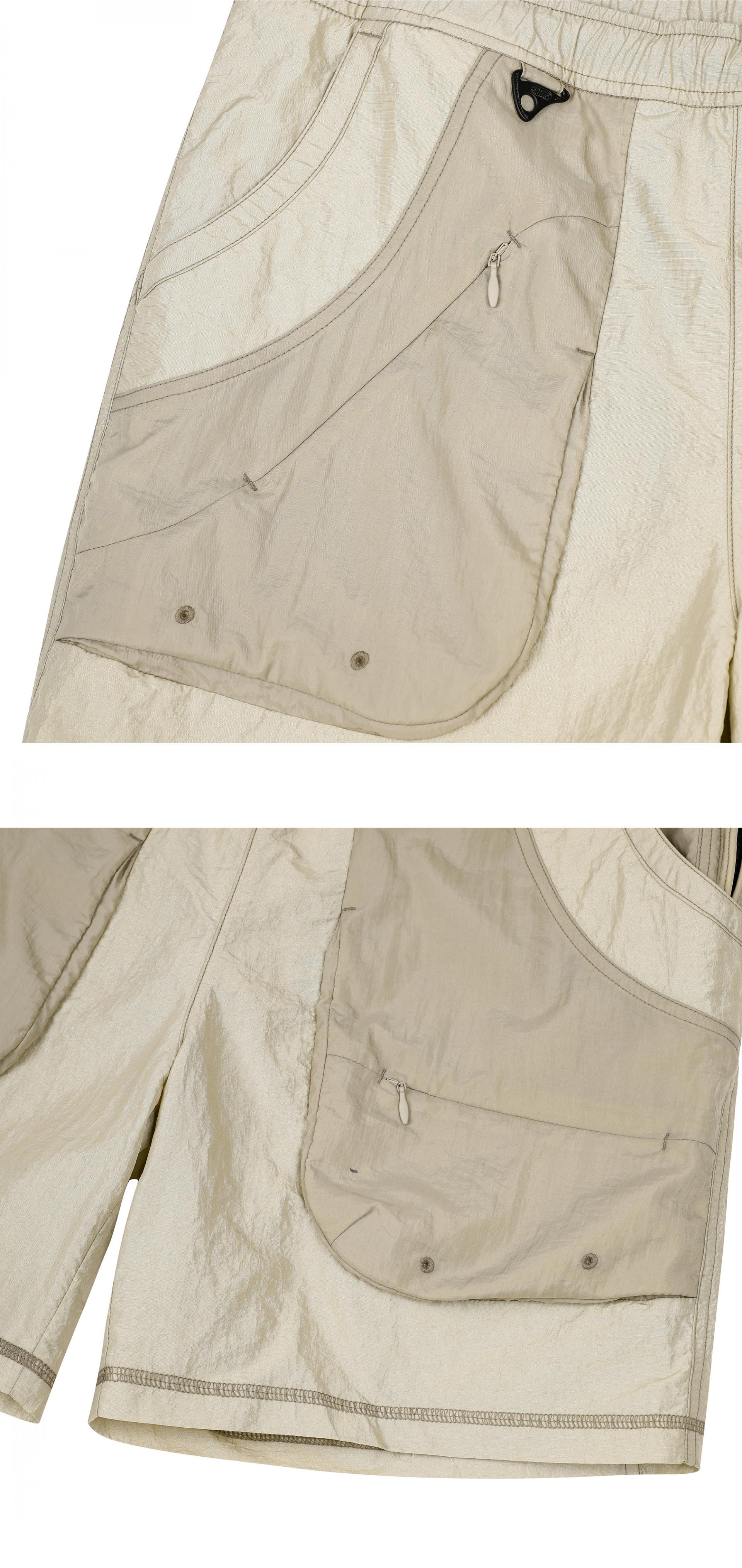 FRONT CARGO POCKET DETAIL MOUNTAIN SHORTS - BEIGE