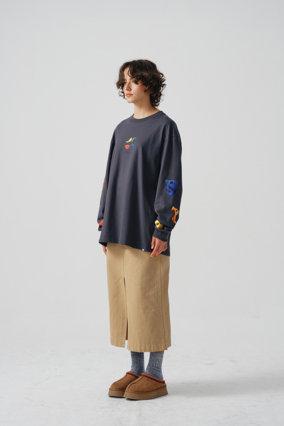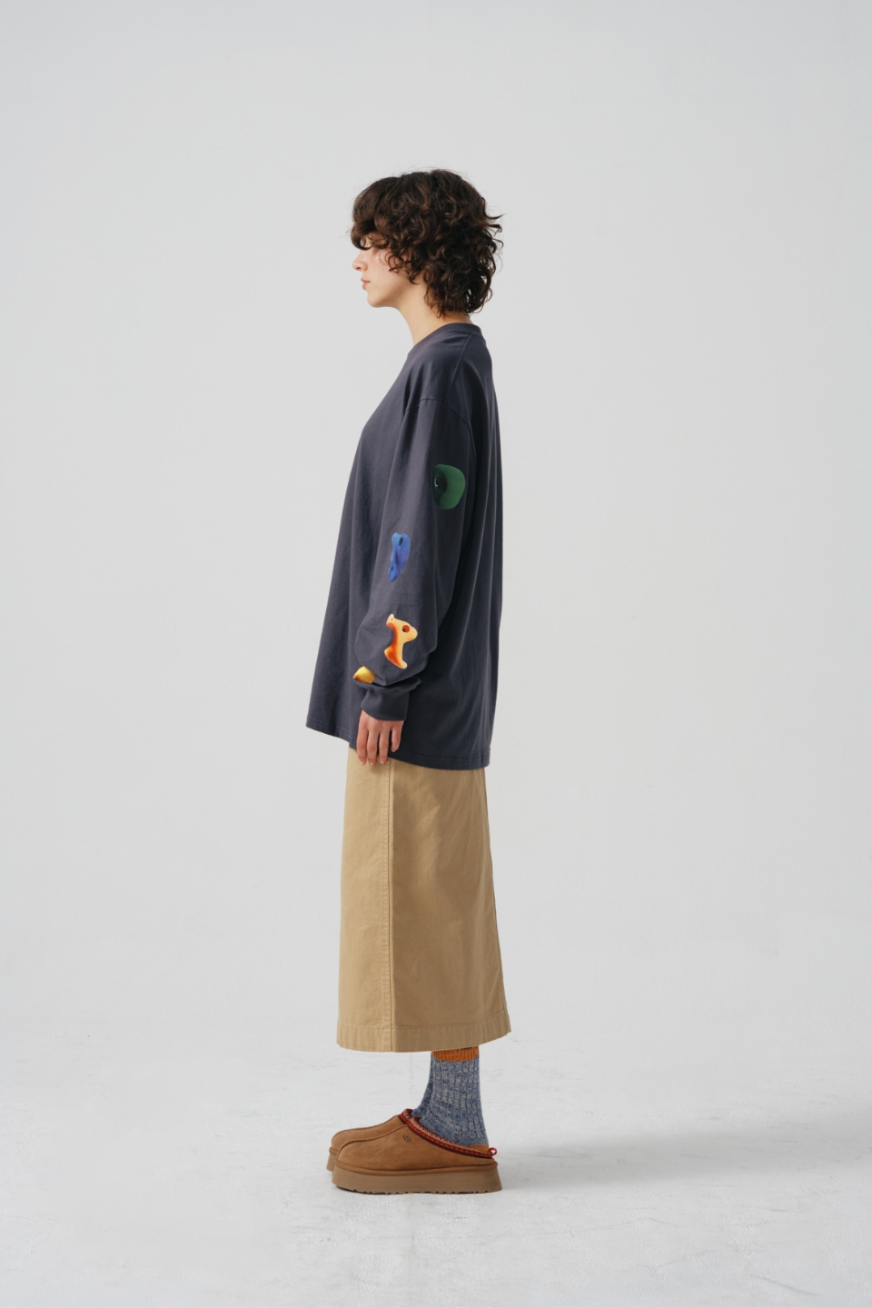 여유 있는 실루엣의 롱 슬리브입니다.