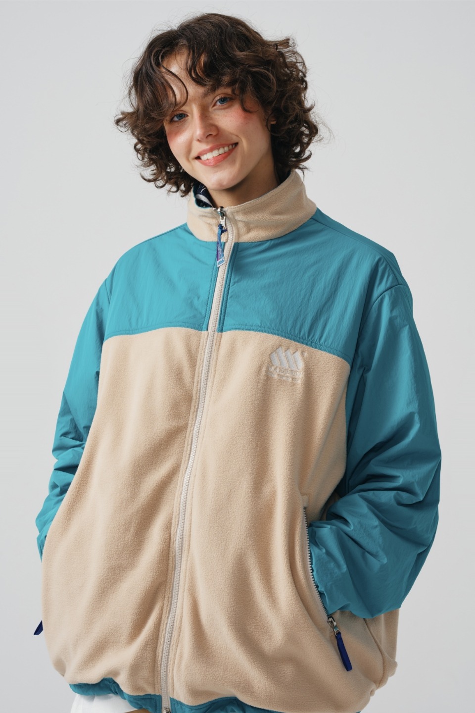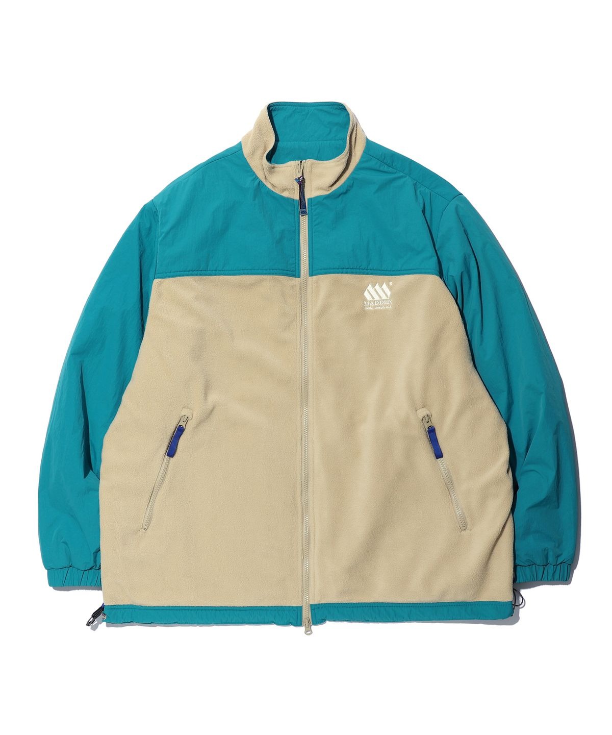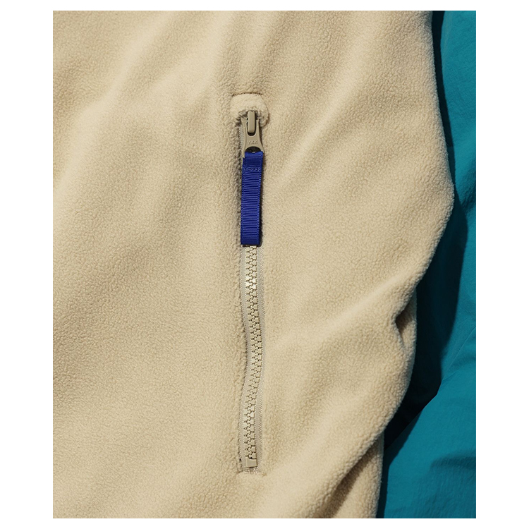 플리스 원단을 적용한 볼드한 배색의 디자인이 특징입니다.