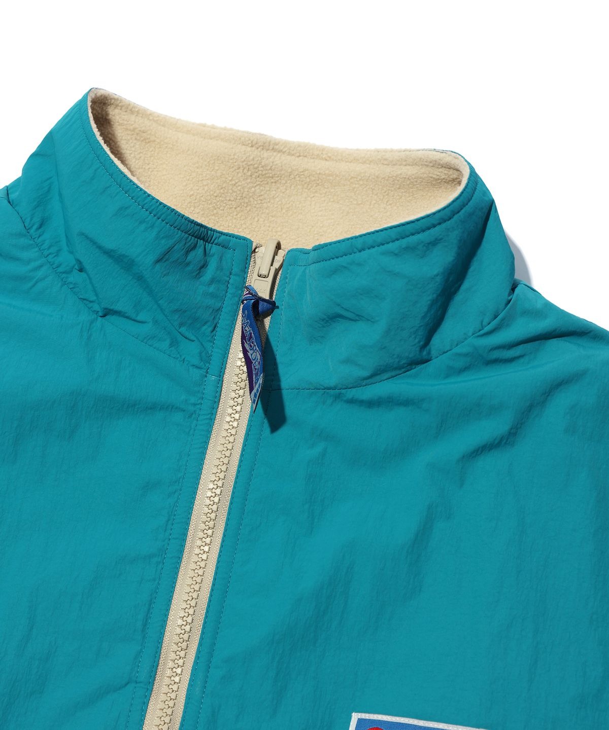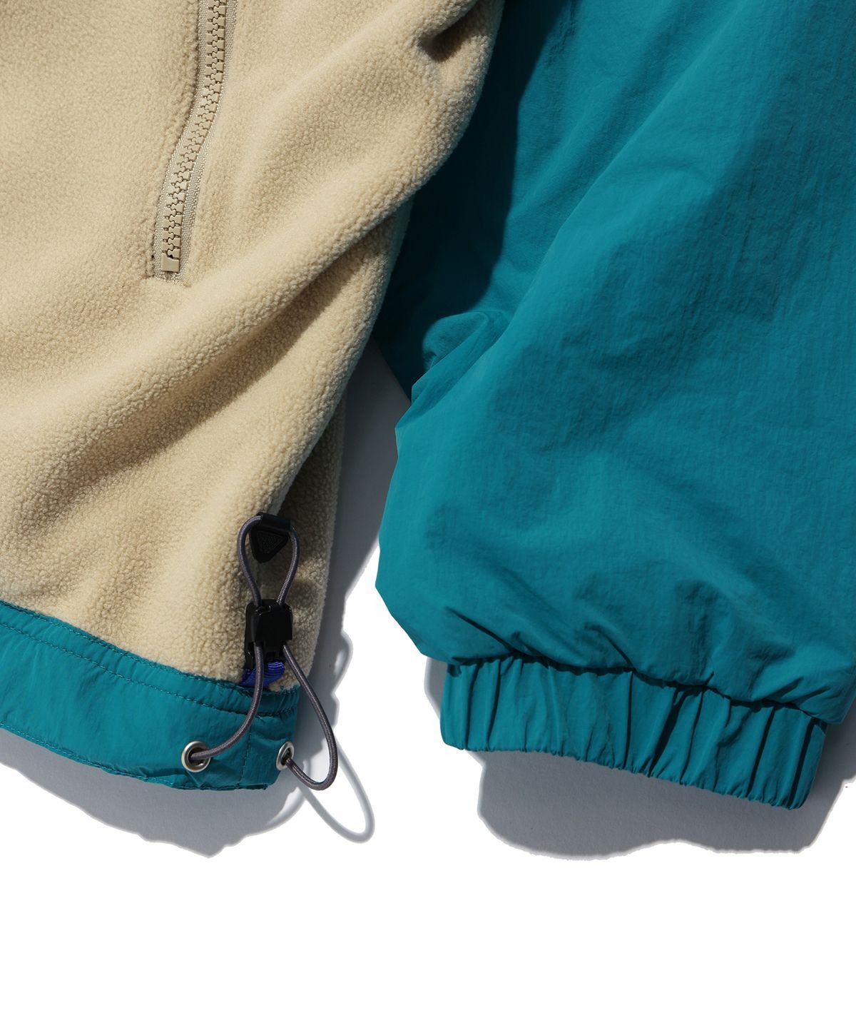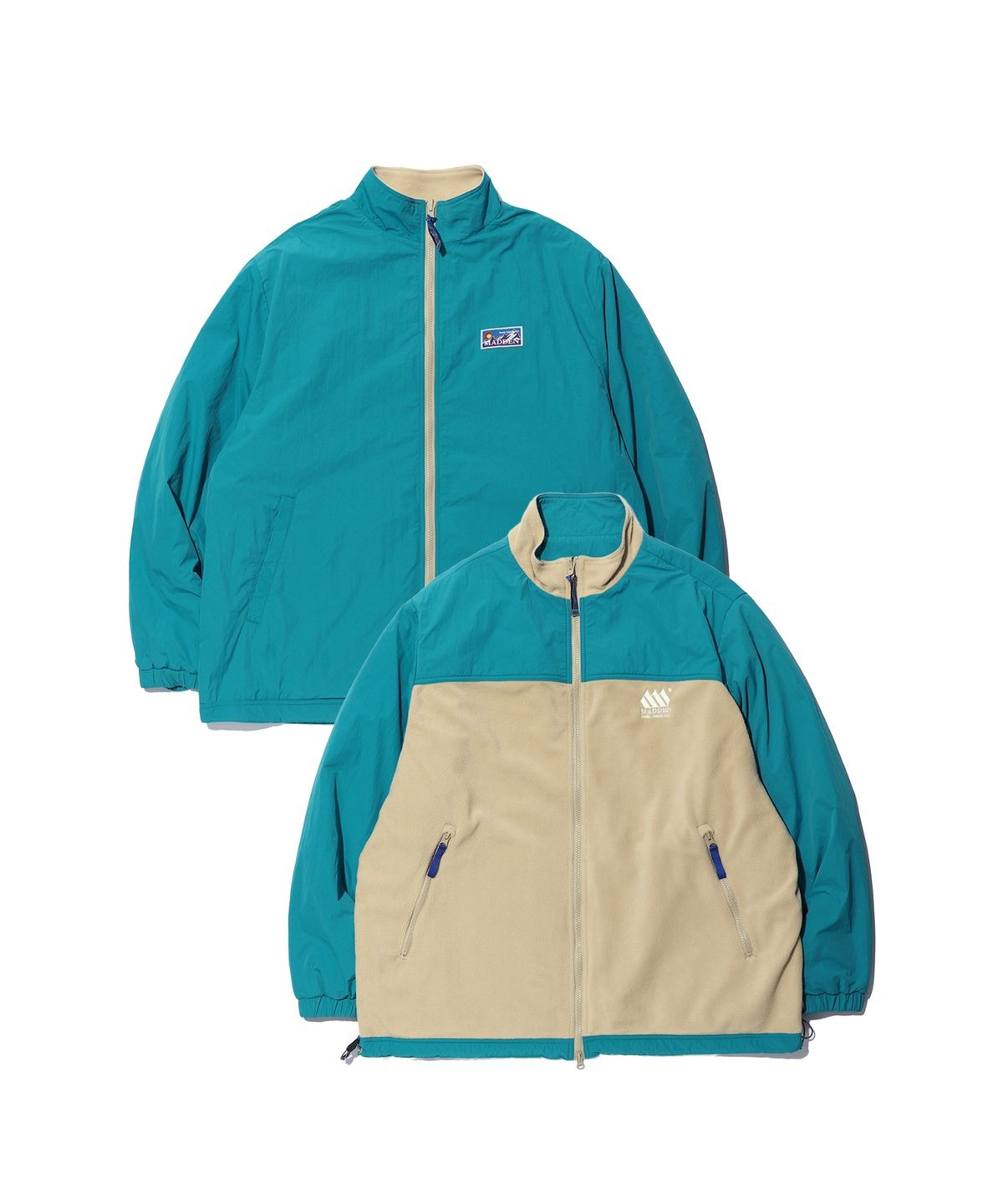 플리스 원단을 적용한 볼드한 배색의 디자인이 특징입니다.