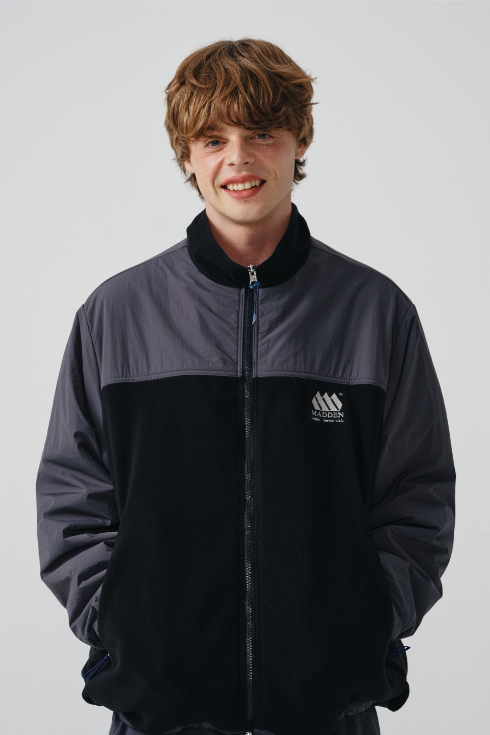 플리스 원단을 적용한 볼드한 배색의 디자인이 특징입니다.