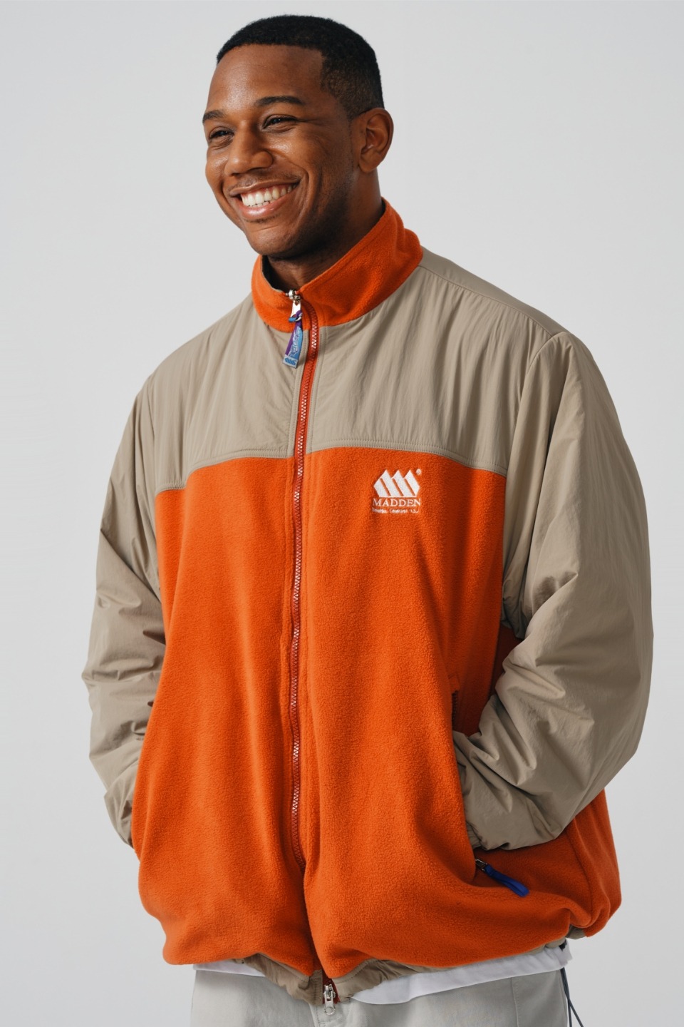 플리스 원단을 적용한 볼드한 배색의 디자인이 특징입니다.