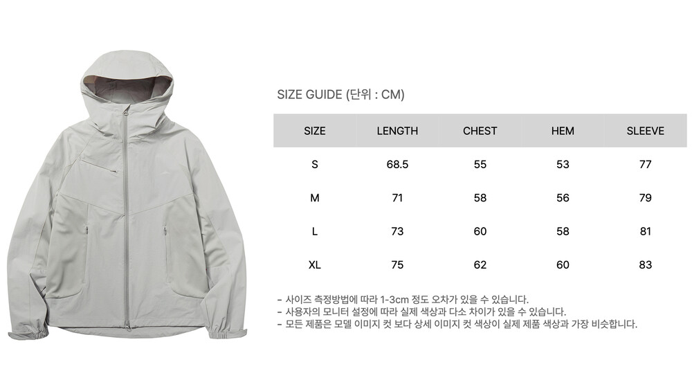 나일론 소재에 높은 스트레치성을 부여하여 아웃도어 활동에 적합한 자켓입니다.
