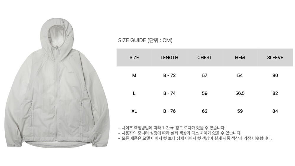 하이킹 및 일상에서 가볍게 착용 가능한 초경량 자켓입니다.