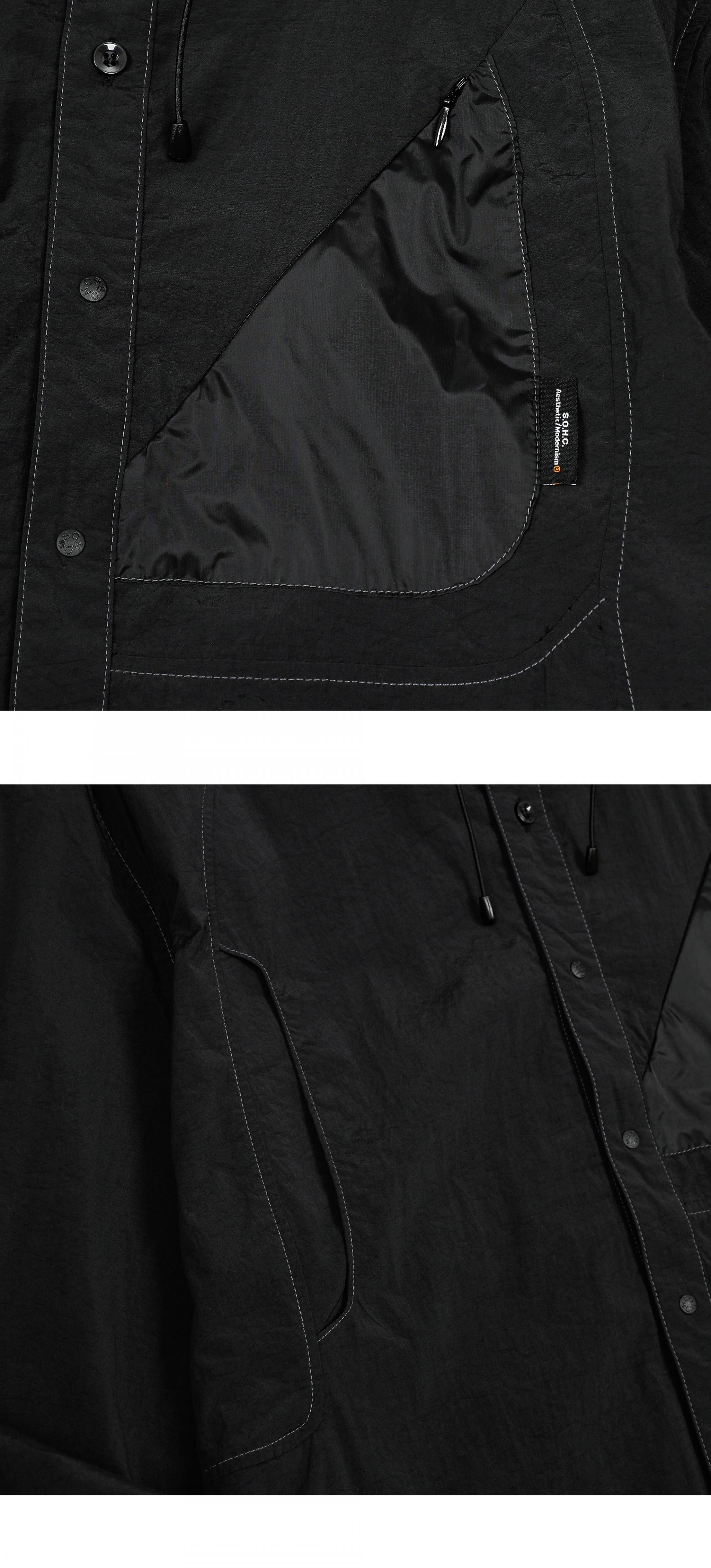 버튼과 엘라스틱 코드를 사용해 칼라를 올려 고정하여 보온성을 높일 수 있습니다.