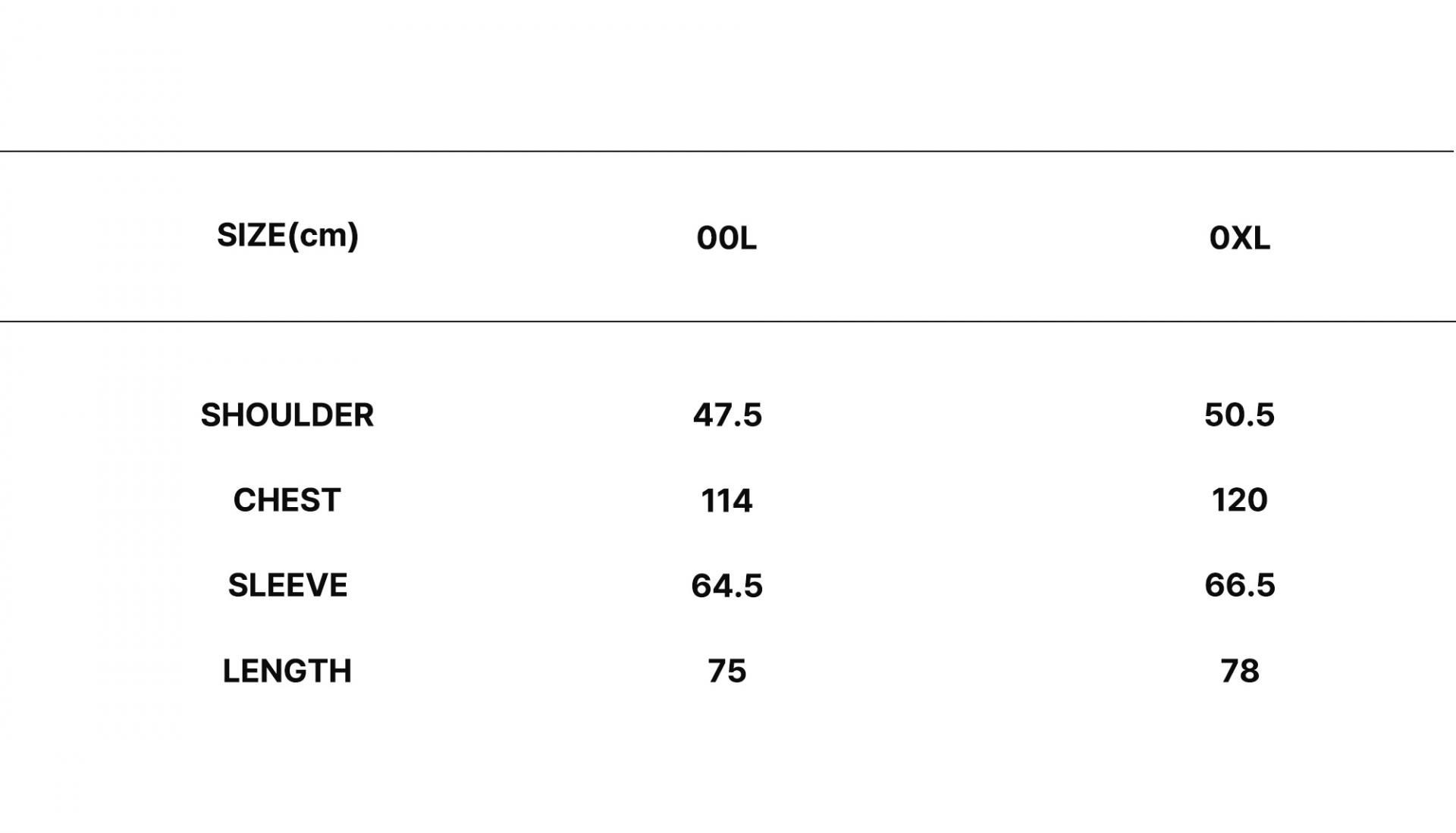 L 사이즈 - 어깨 : 47.5cm, 가슴(둘레) : 114.0cm, 소매 : 64.5cm, 총장 : 75.0cm