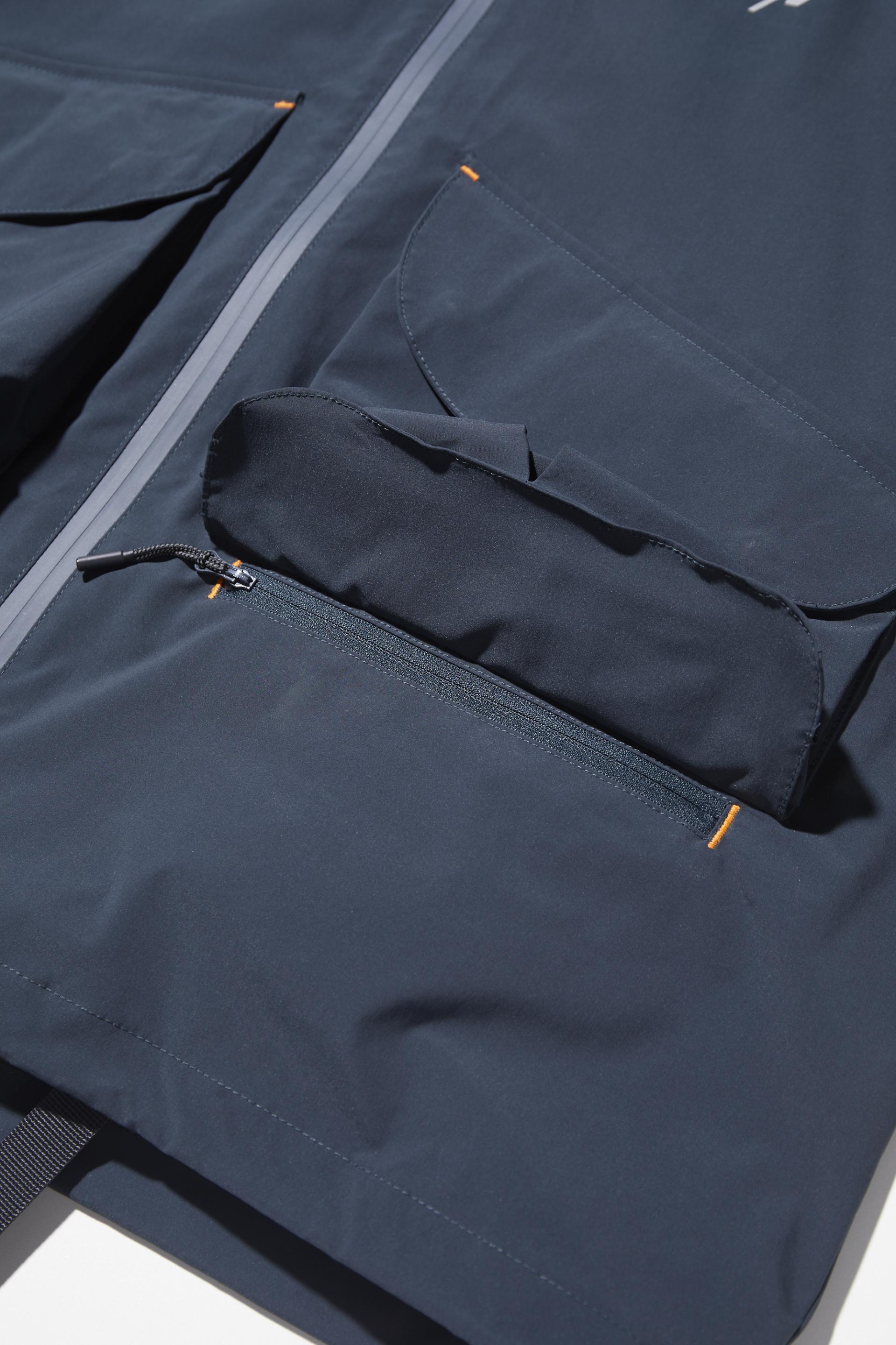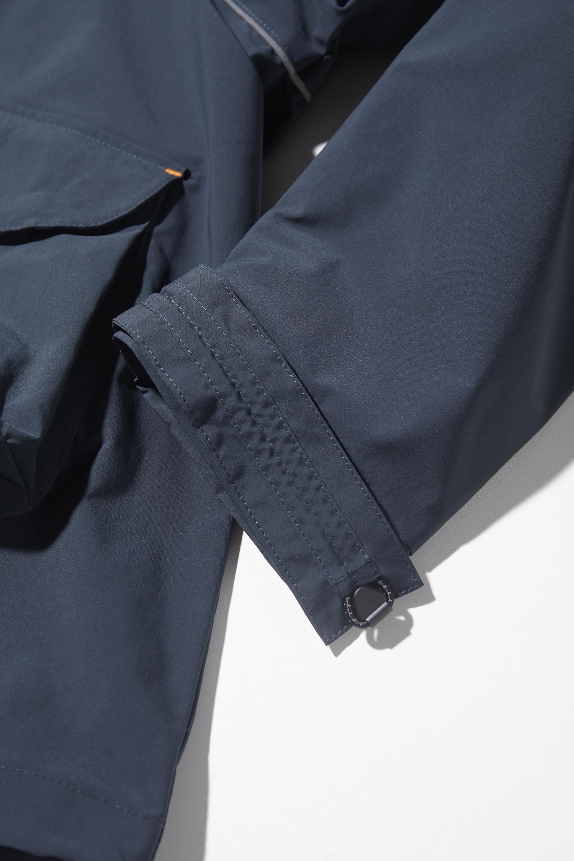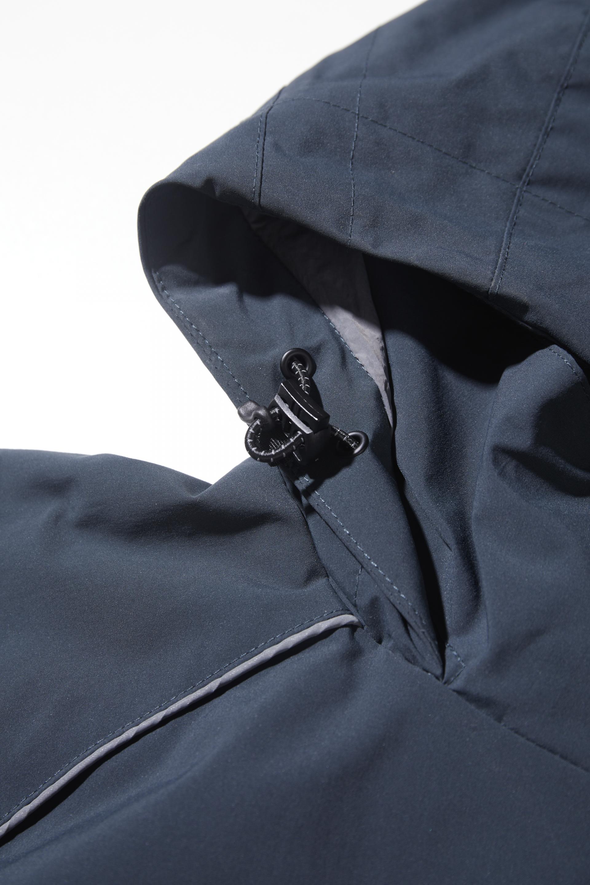 이 제품의 특징 중 하나는 어깨 솔기를 따라 섬세하게 배치된 3M 반사 장식으로, 미니멀한 실루엣을 한층 돋보이게 하면서 안전성을 높입니다.