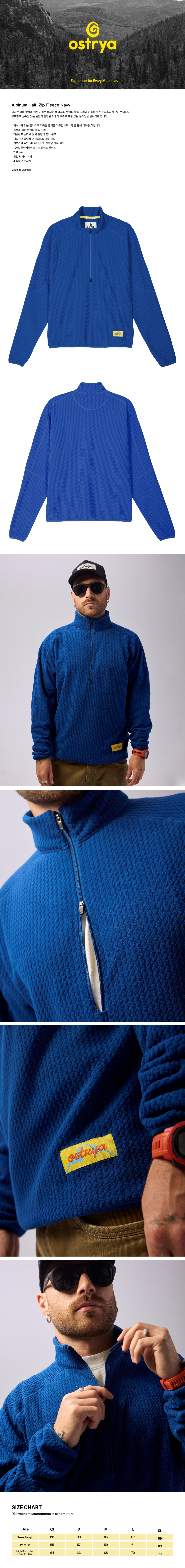 양방향 하프 지퍼와 신축성 있는 커프스와 밑단으로 되어있습니다.