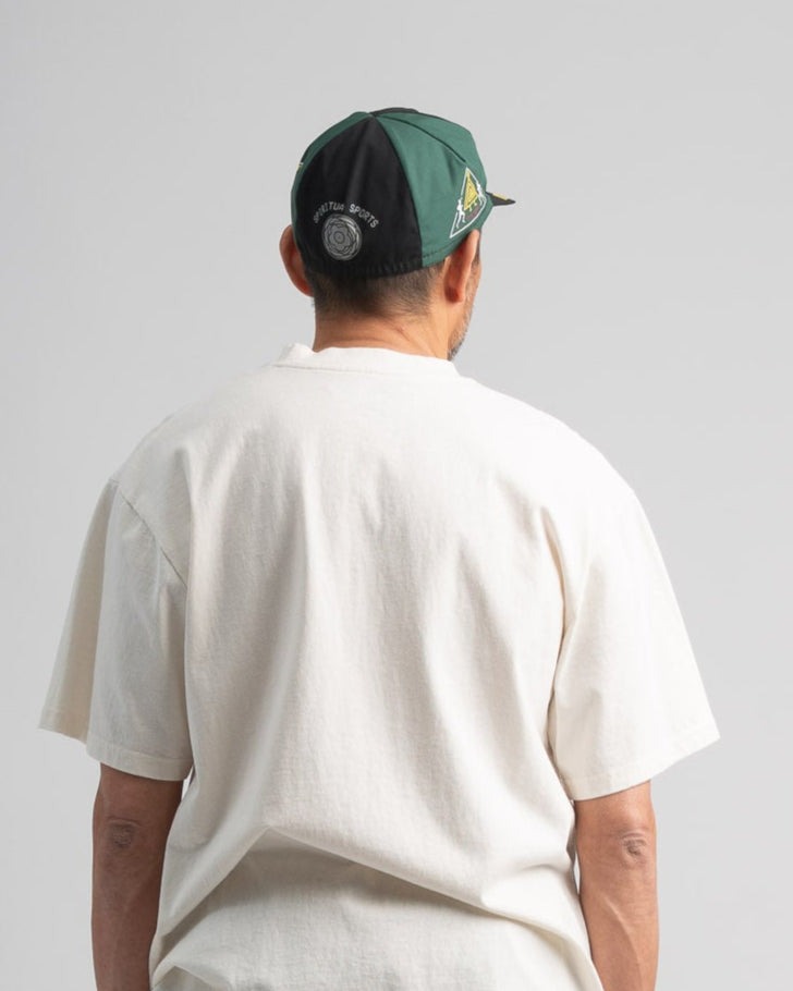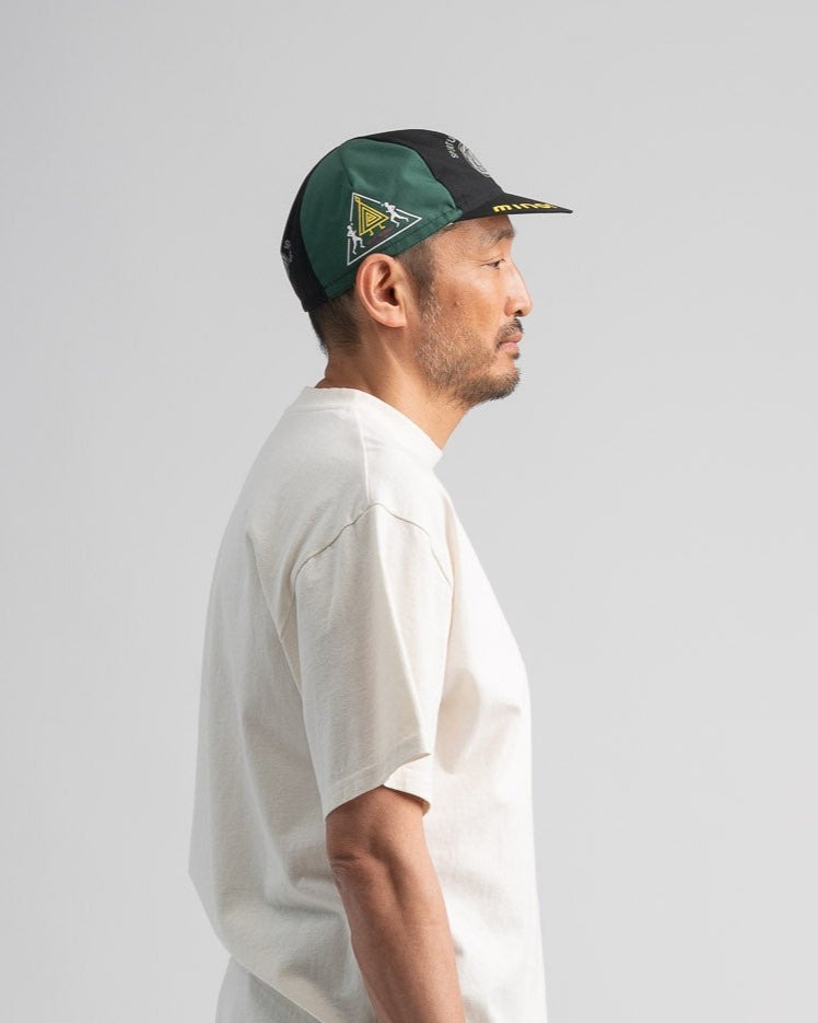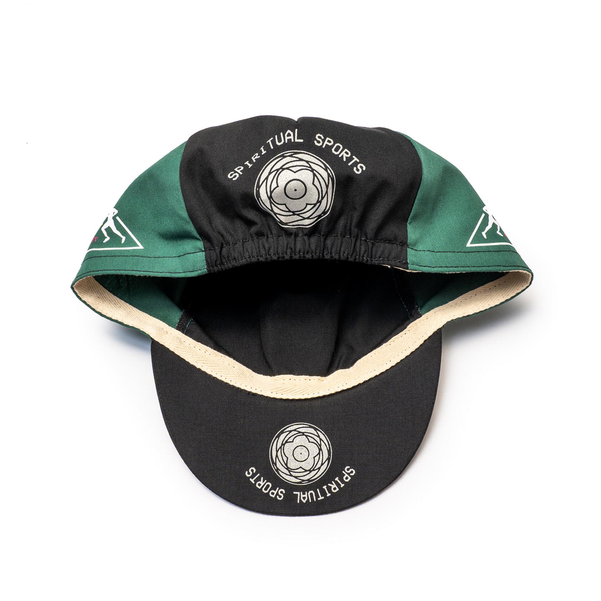 가볍고 통기성 좋은 코튼 소재의 그린 & 블랙 조합의 신축성 있는 사이클 캡입니다.