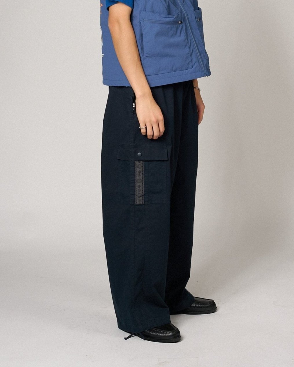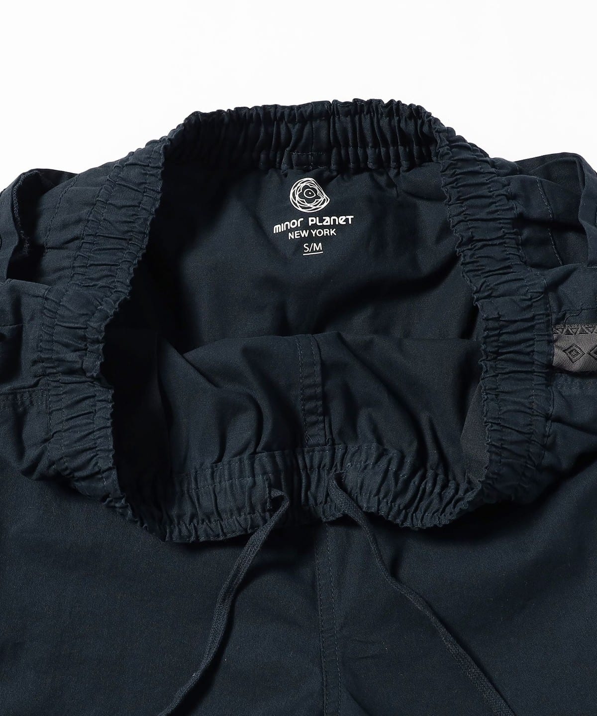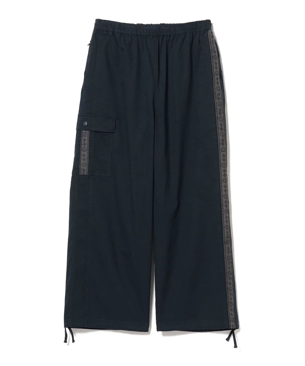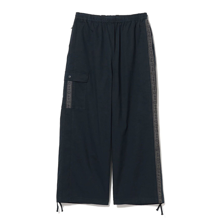 허리는 스트링이 달린 밴딩 처리, 밑단은 조절 가능한 시너치 디테일로 마감되었습니다.