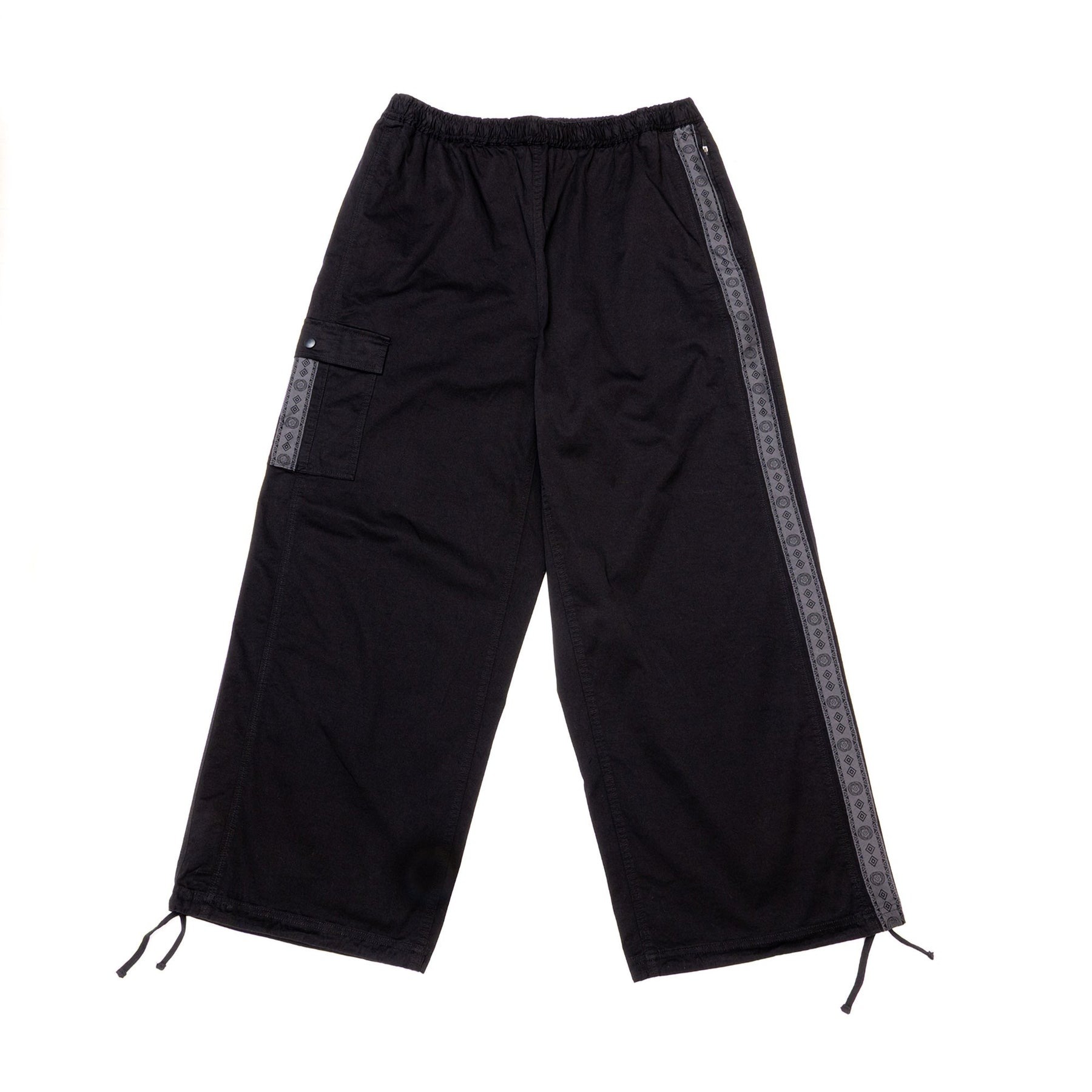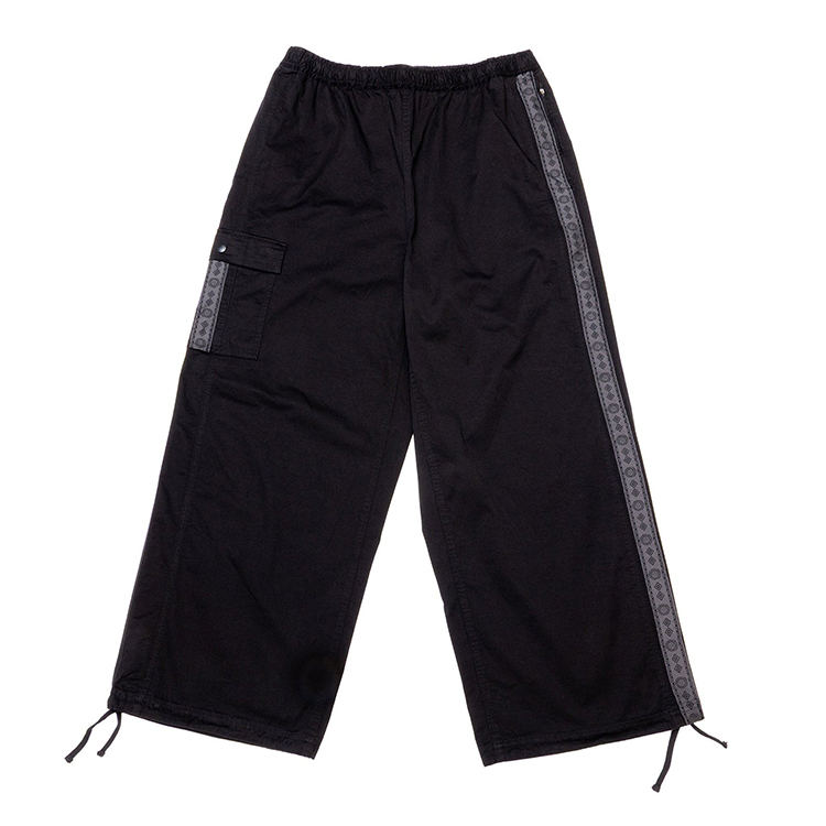 허리는 스트링이 달린 밴딩 처리, 밑단은 조절 가능한 시너치 디테일로 마감되었습니다.
