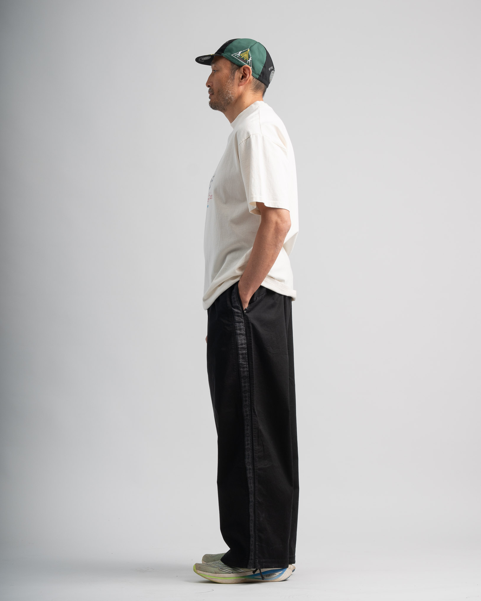 다리 옆선에는 비대칭 디자인의 커스텀 블랙 컬러 웨빙 디테일이 더해져 포인트를 줍니다.