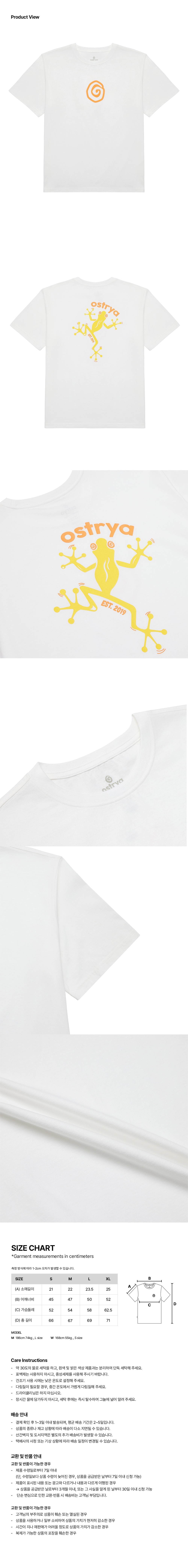 M 사이즈 - 총길이 : 67.0, 어깨너비 : 47.0, 가슴둘레 : 54.0, 소매길이 : 22.0