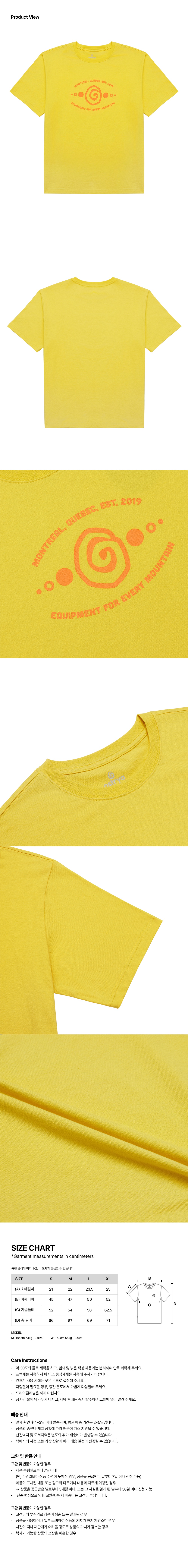 M 사이즈 - 총길이 : 67.0, 어깨너비 : 47.0, 가슴둘레 : 54.0, 소매길이 : 22.0