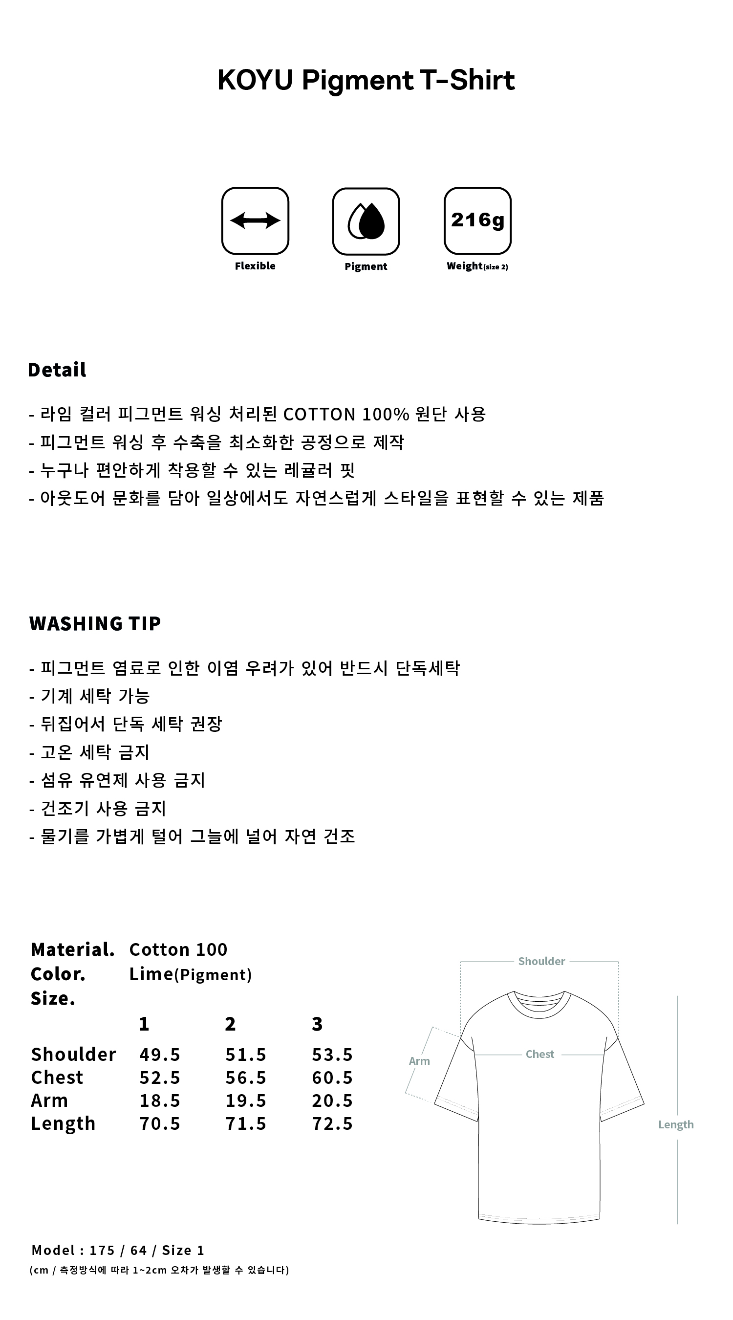 KOYU PIGMENT T-SHIRT - LIME (15% 쿠폰 프로모션)