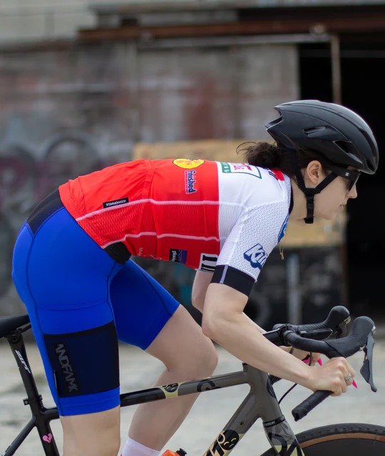 모델인 ANNABELLE은 S SIZE JERSEY와 CARGO BIB SHORT을 착용하였습니다. |