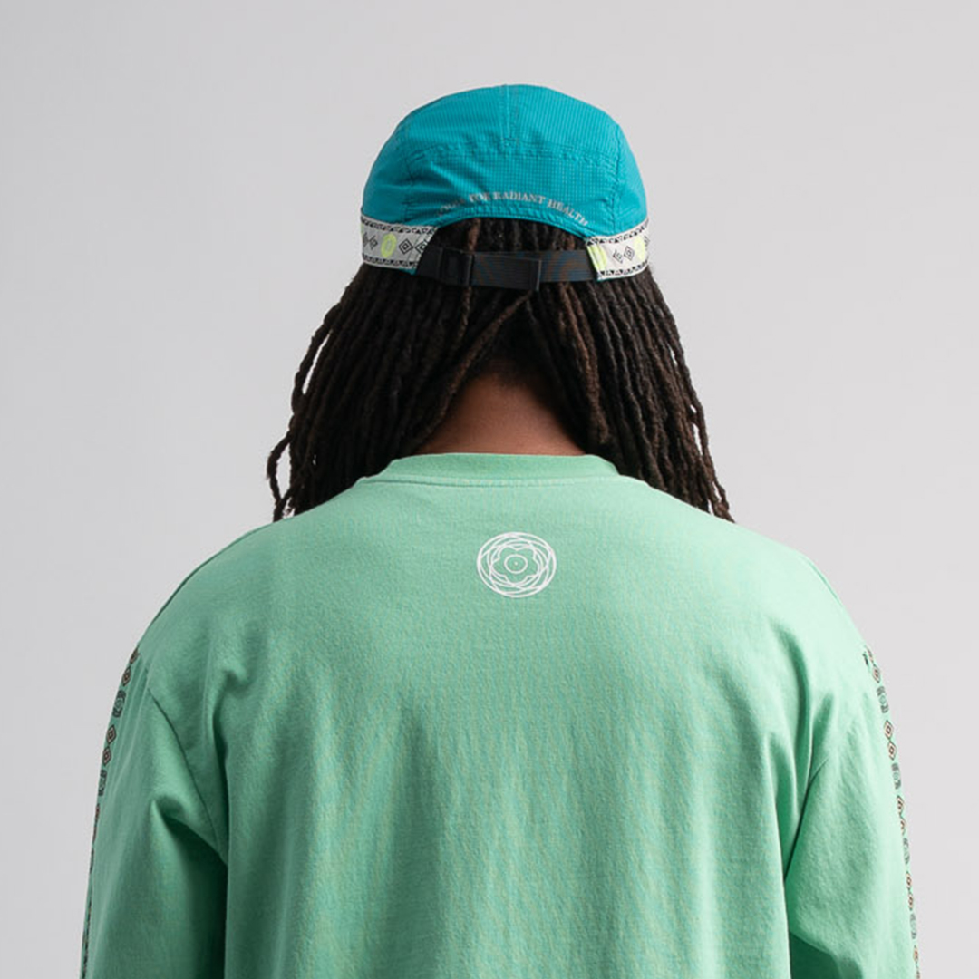 전면에는 리플렉티브 로고 프린트를 적용하였으며, 후면에는 “TOOLS FOR RADIANT HEALTH” 슬로건이 프린트되어 있습니다.