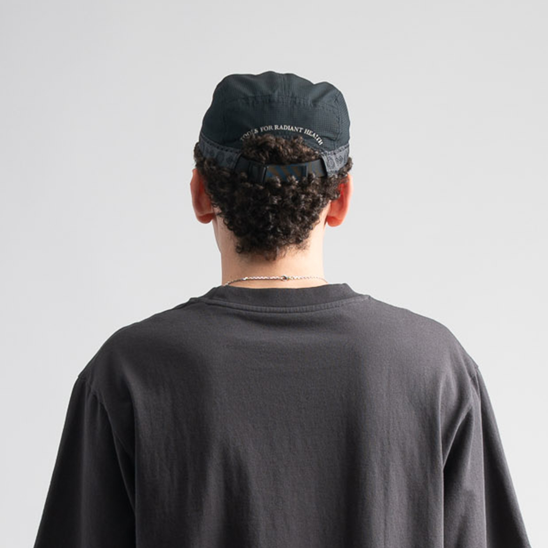 전면에는 리플렉티브 로고 프린트를 적용하였으며, 후면에는 “TOOLS FOR RADIANT HEALTH” 슬로건이 프린트되어 있습니다.