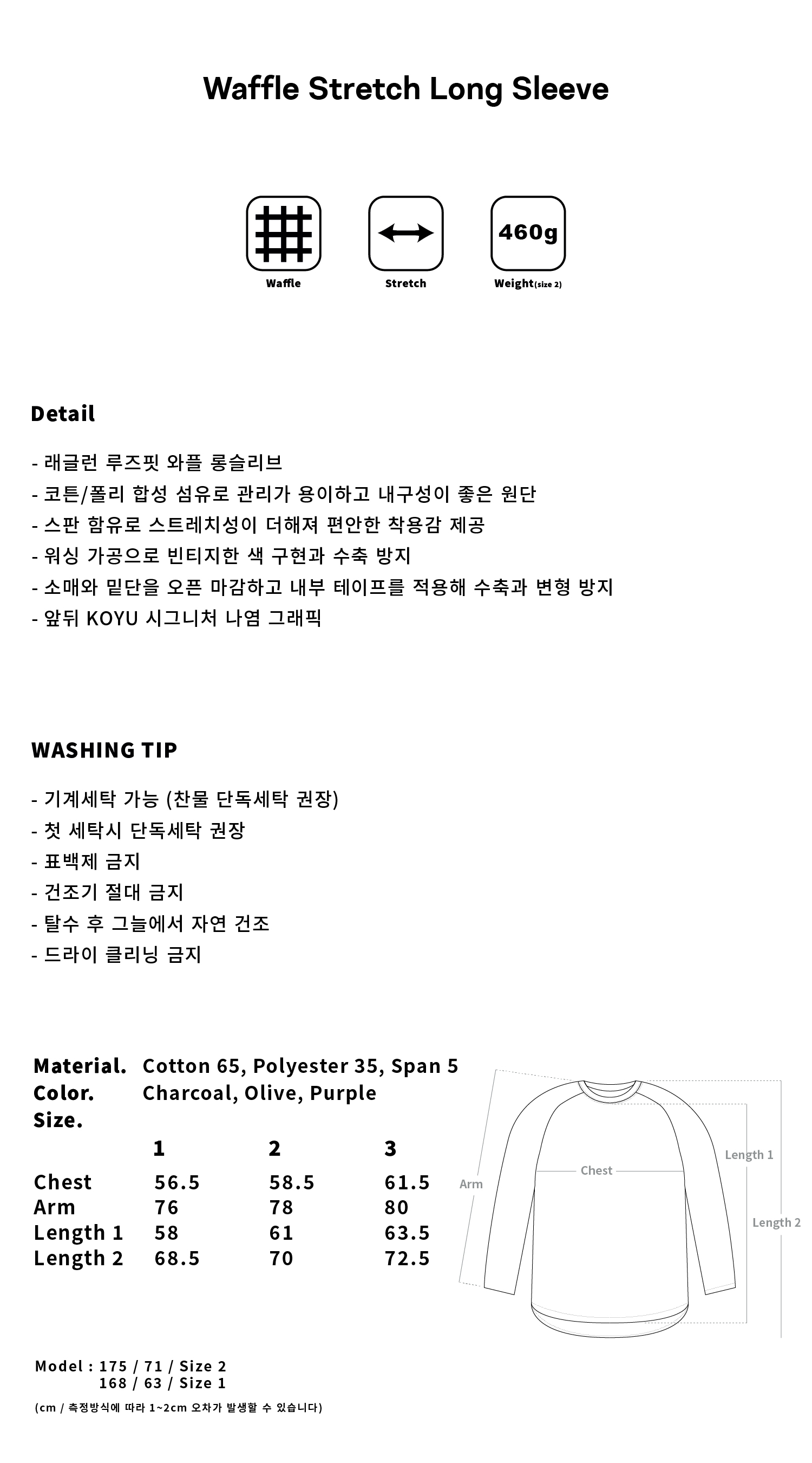 WAFFLE STRETCH LONG SLEEVE - CHARCOAL (RESTOCK, 무료 배송)