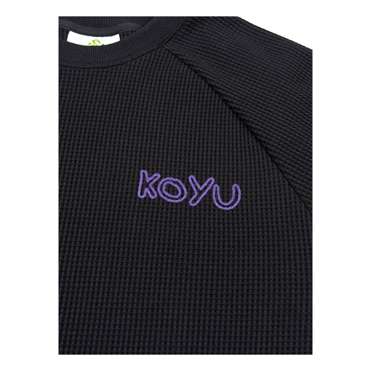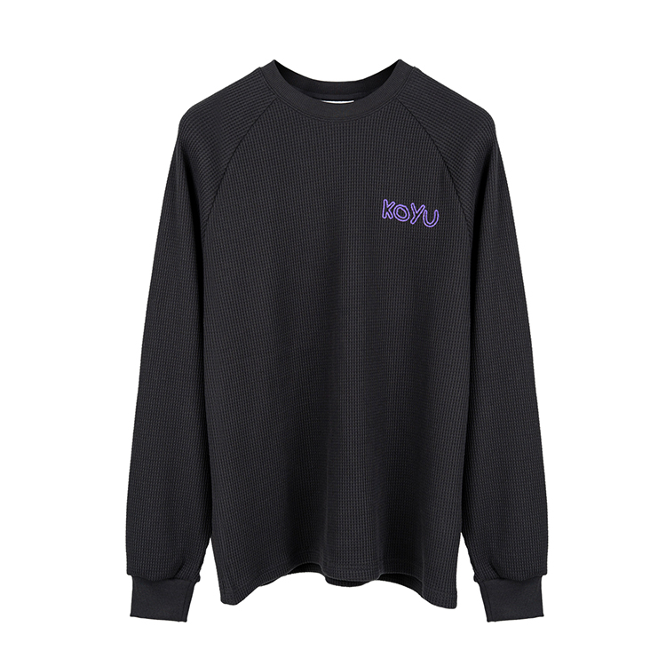 RAGLAN STRETCH WAFFLE LONG SLEEVE - BLACK (무료 배송)