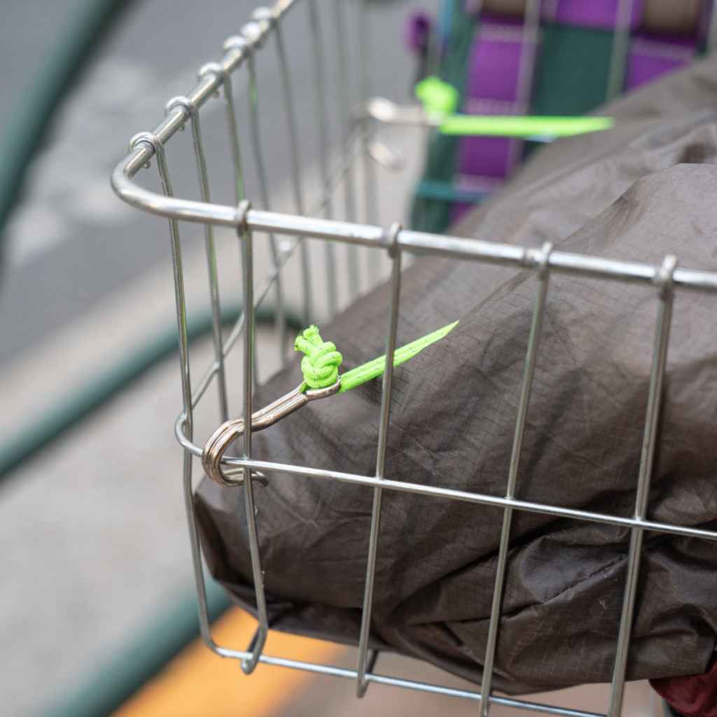 바스켓 네 곳에 스트랩을 걸어 X자 형태로 고정할 수 있어 짐을 안정적으로 잡아줍니다.