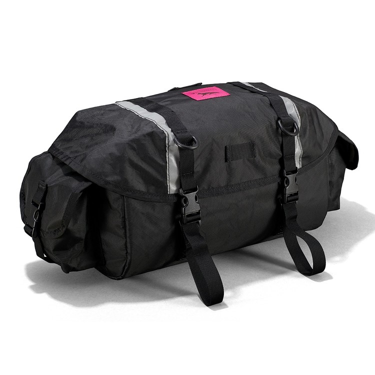 핸들바 앞이나 안장 뒤에 장착해서 사용할 수 있으며, 12L의 용량을 가지고 있습니다.